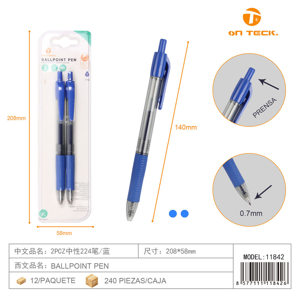 Bolígrafo On Teck Sa De Cv Azul 0.7 mm para Oficina y Escuela, Plástico, Paquete de 2 Piezas