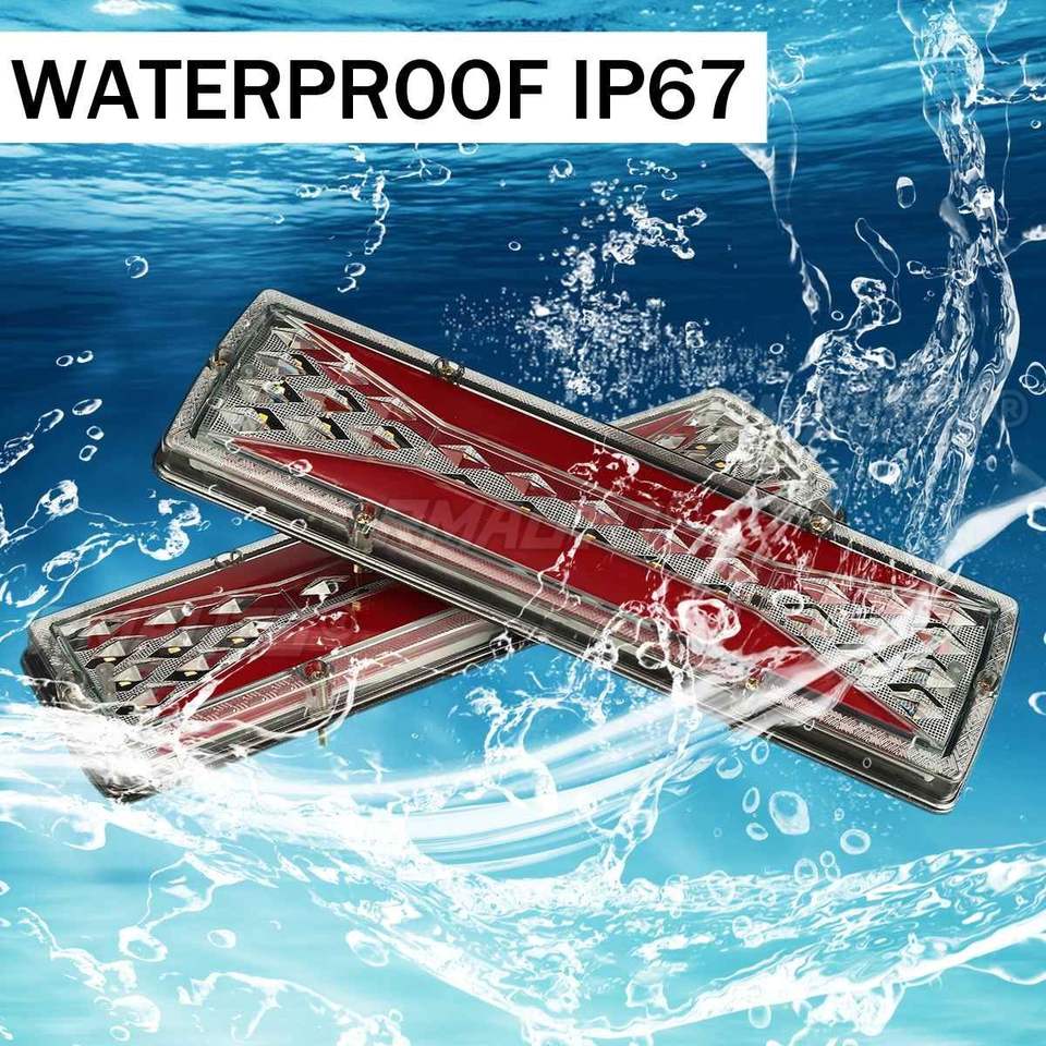 2 luces traseras LED impermeables para camión, remolque, caravana, UTE, ATV, con función de guía de flujo, direccional, freno, marcha atrás y antiniebla