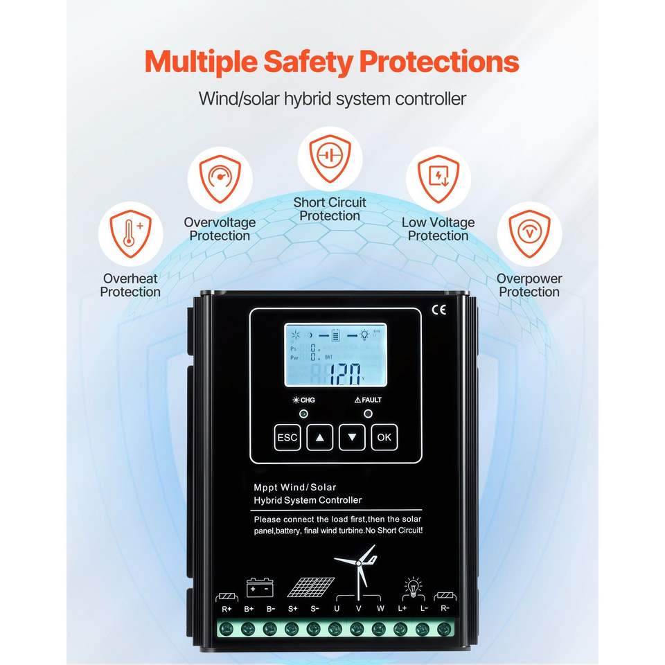 Kit de Energía Solar y Eólica de 1000W: 2 Paneles Solares de 100W, Turbina Eólica de 400W, Batería LiFePO4 de 12.8V 100Ah, Inversor de 12V 600W