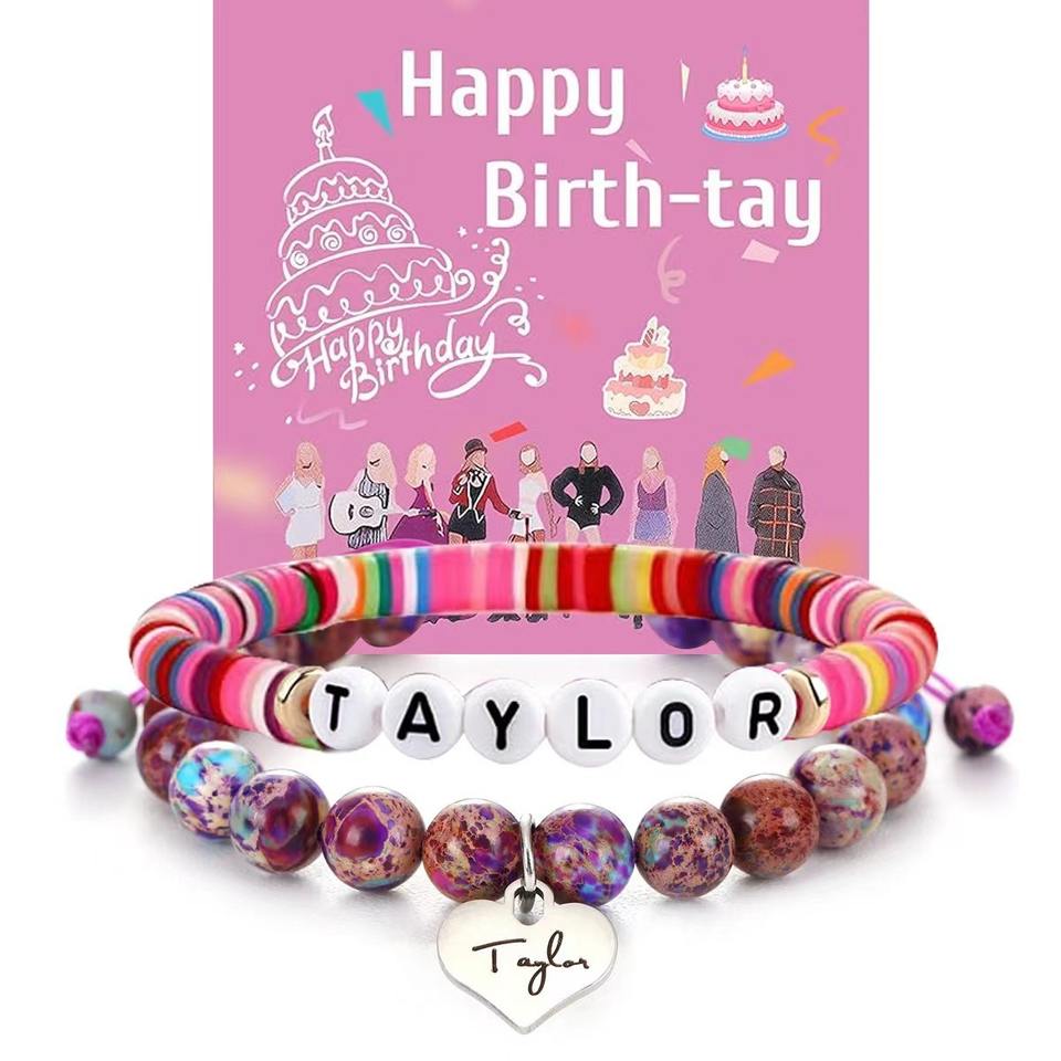 2 uds. Pulseras coloridas para Taylor de amistad, regalo de cumpleaños, Fans, álbum, pulsera, pulsera de cuentas con letras rápidas para niña, recuerdo de fiesta