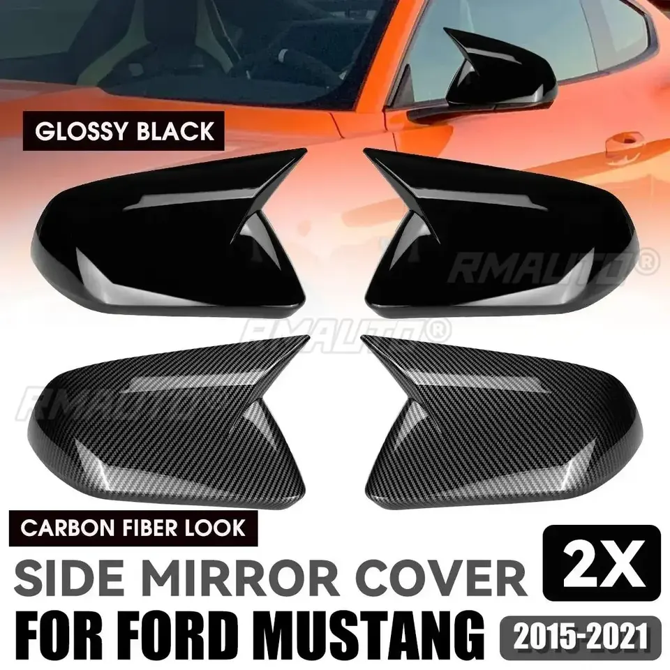 2 Cubiertas para Espejos Retrovisores Laterales para Ford Mustang 2015 2016 2017 2018 2019 2020 2021, Color Negro Brillante, Fibra de Carbono