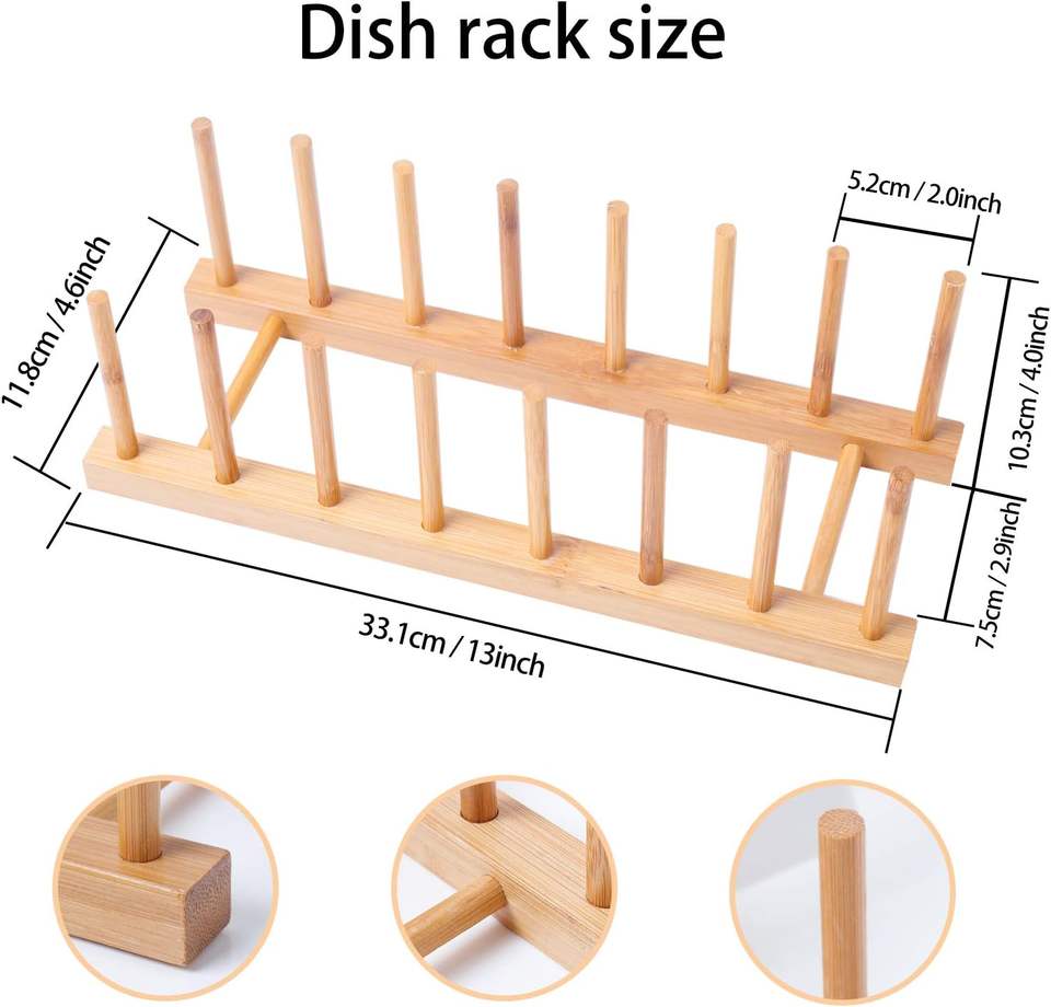 Paquete de 2 estantes de madera de bambú para platos, soporte para tapa de olla, organizador de armario de cocina para tabla de cortar tazas, secado de cuencos