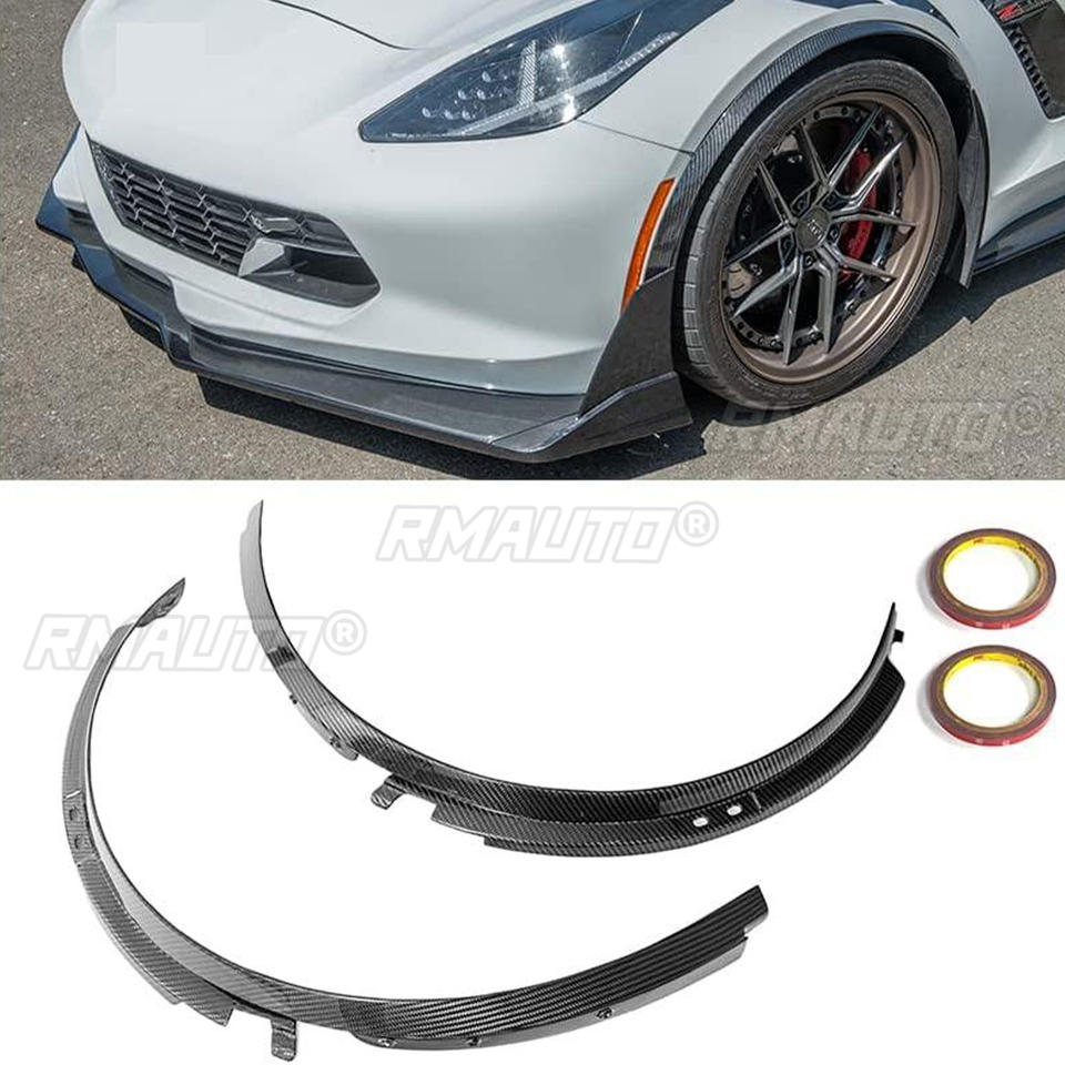 2 Piezas de Molduras para Guardabarros Delanteros de Coche para Chevrolet Corvette C7 2014-2019, Todos los Modelos, Aspecto de Fibra de Carbono Negro Brillante, Accesorios para Guardabarros
