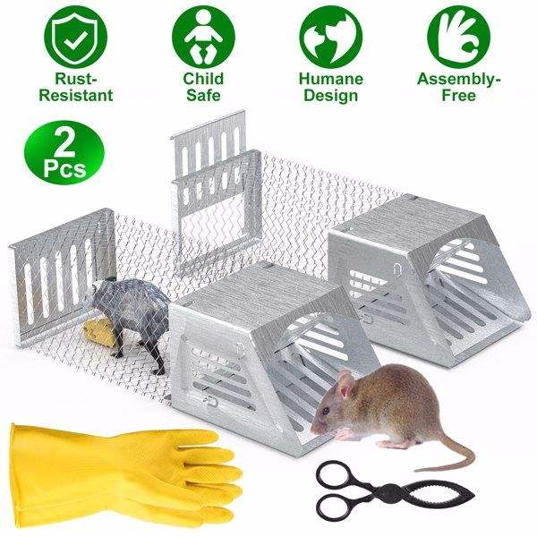 2 Trampas para Ratones de Puerta Única, Trampa Automática Continua para Ratas, Reutilizable, Captura y Libera Vivos, No Requiere Montaje