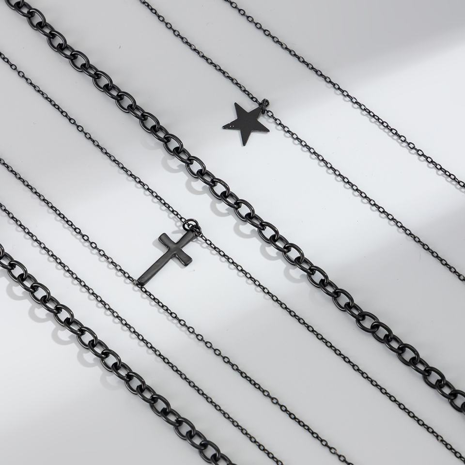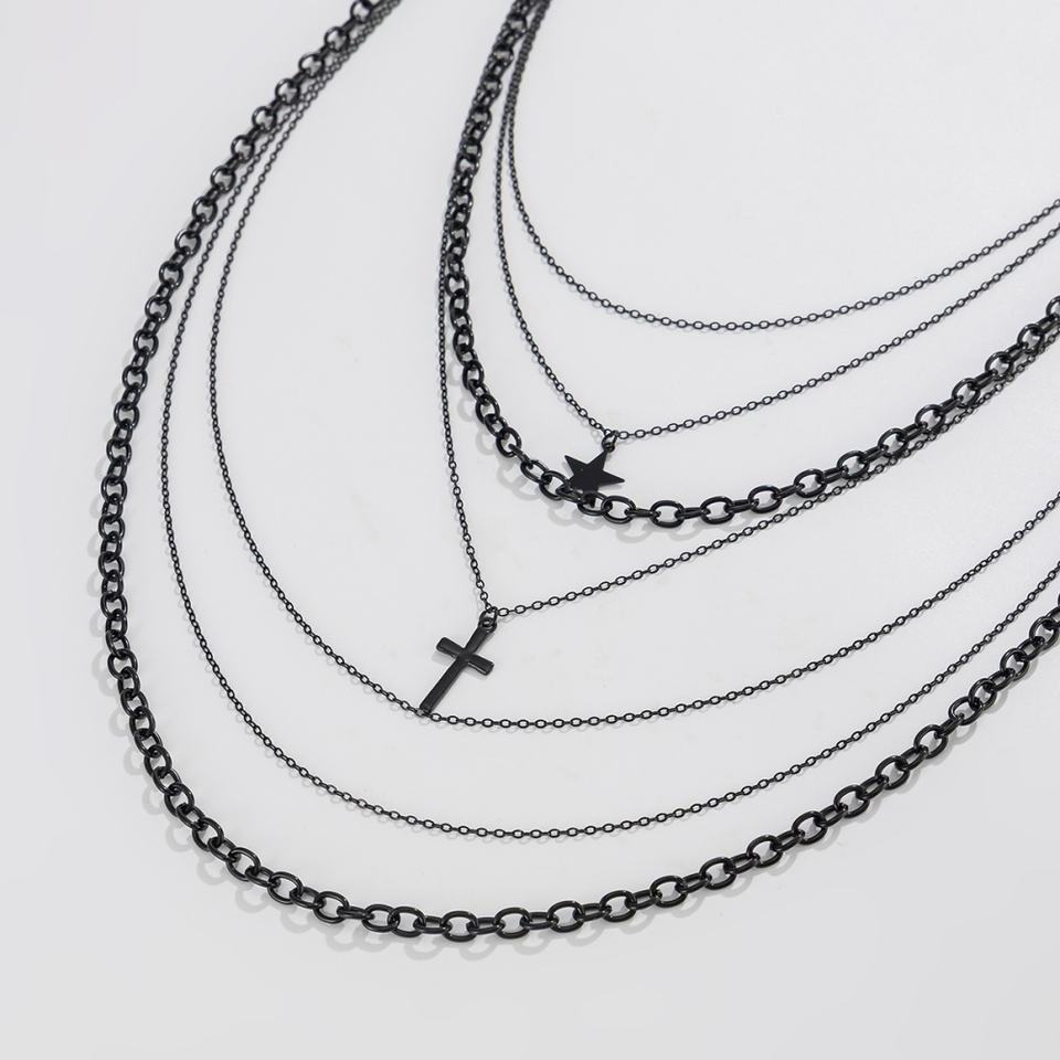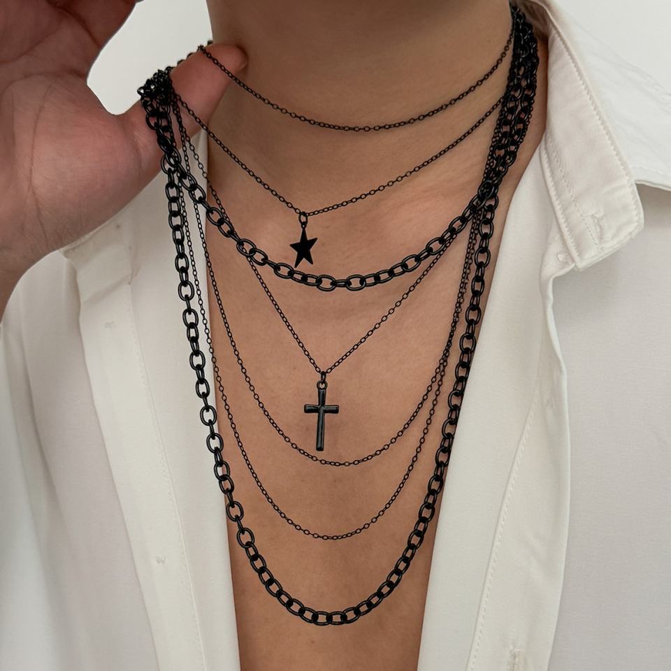Juego de 2 Collares de Cadena Larga con Colgante de Cruz/Estrella de Varias Capas Estilo Hip Hop para Hombre, Accesorios de Moda Punk para Uso Diario, Regalo de Joyería