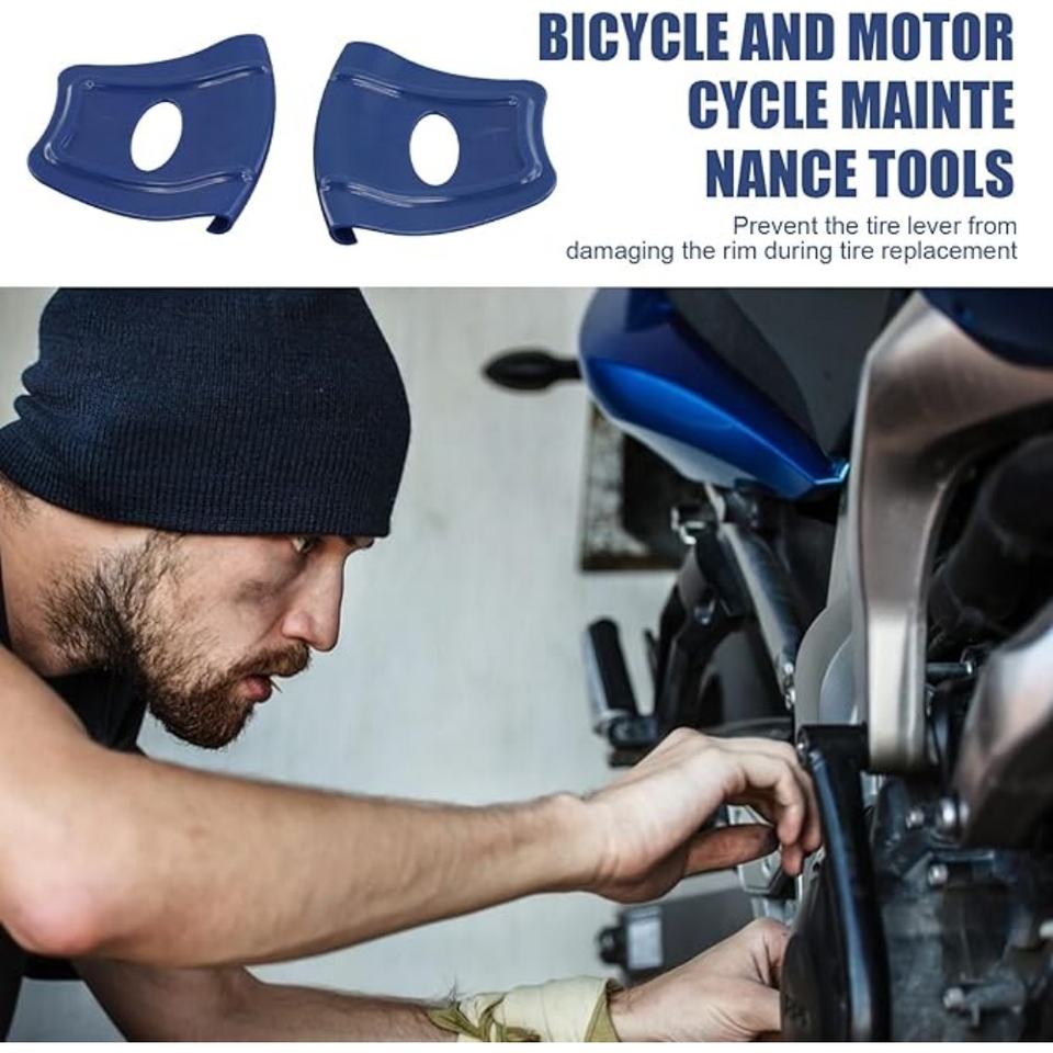 Protector de llanta de motocicleta universal, protector de llanta de motocicleta resistente para instalación y cambio de neumáticos, azul, 2 uds.