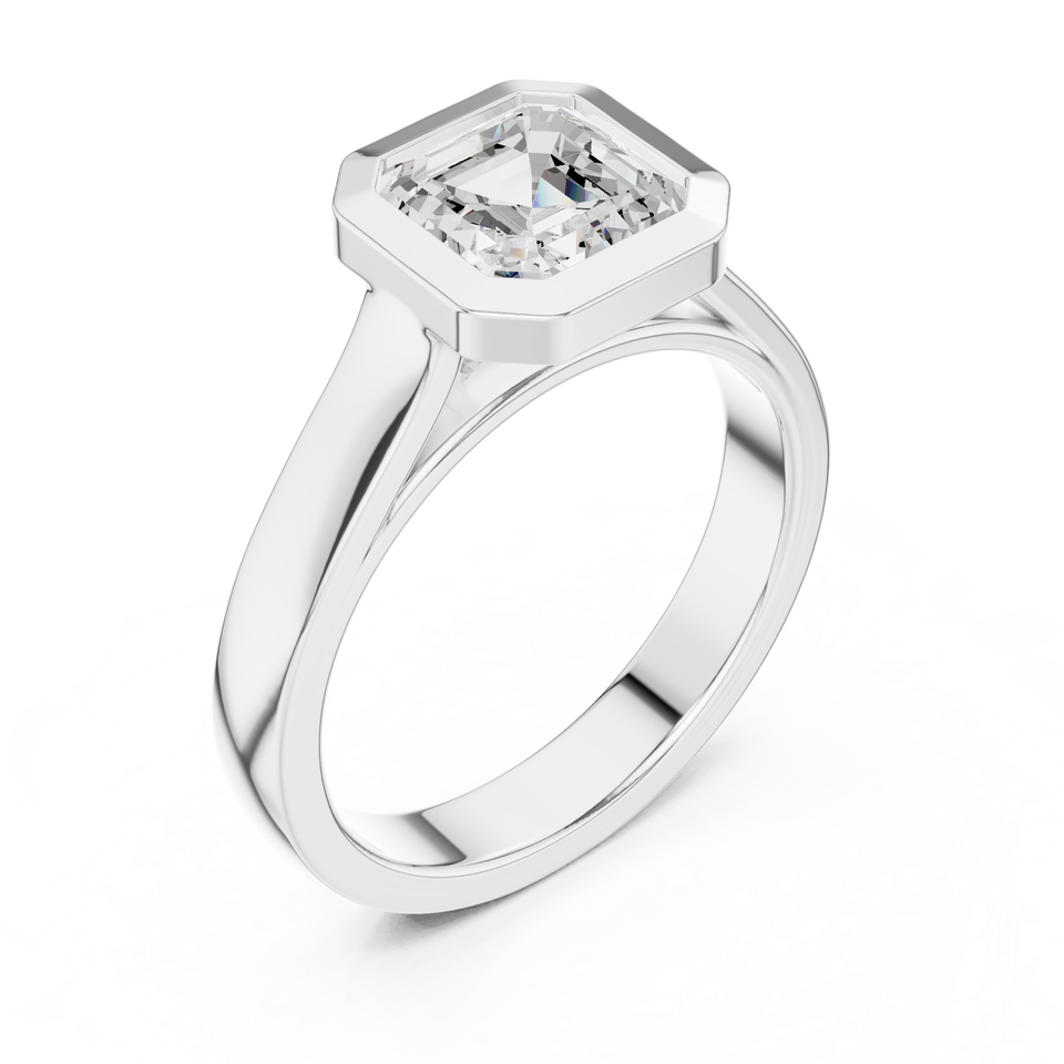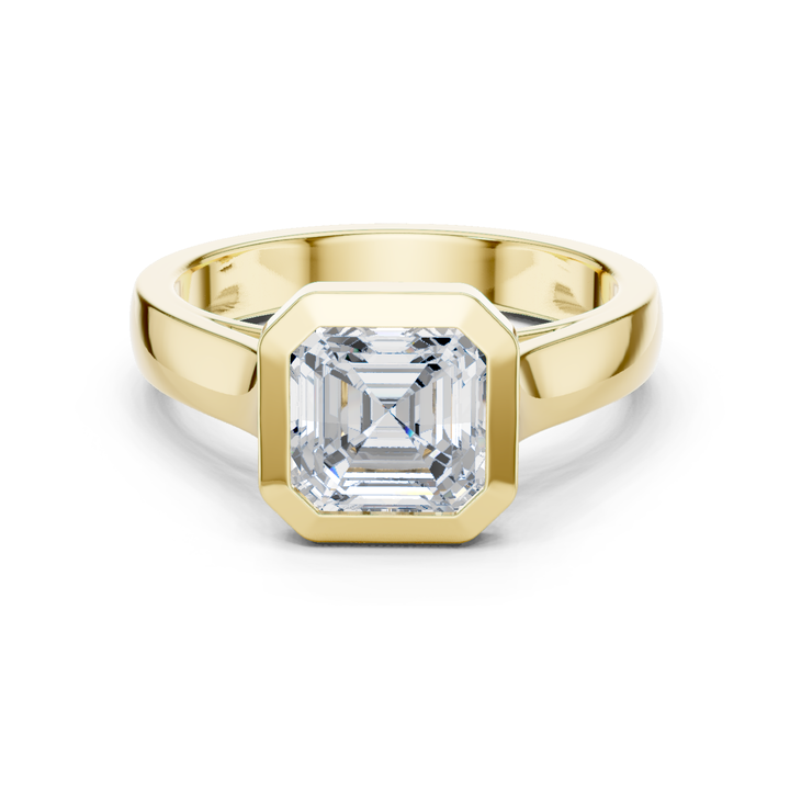 Anillo de Compromiso y Boda para Hombre con Diamante Cultivado en Laboratorio de Corte Asscher de 2 Quilates, Engaste en Bisel de Oro Sólido de 10K
