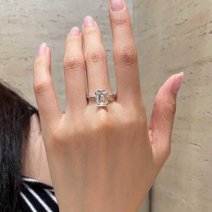 Anillo de Diamante Cultivado en Laboratorio con Corte Esmeralda de 2 Quilates, Certificado IGI, Color F, Claridad VS+, Oro Blanco de 14K, Anillo de Compromiso Solitario para Mujer, Regalo
