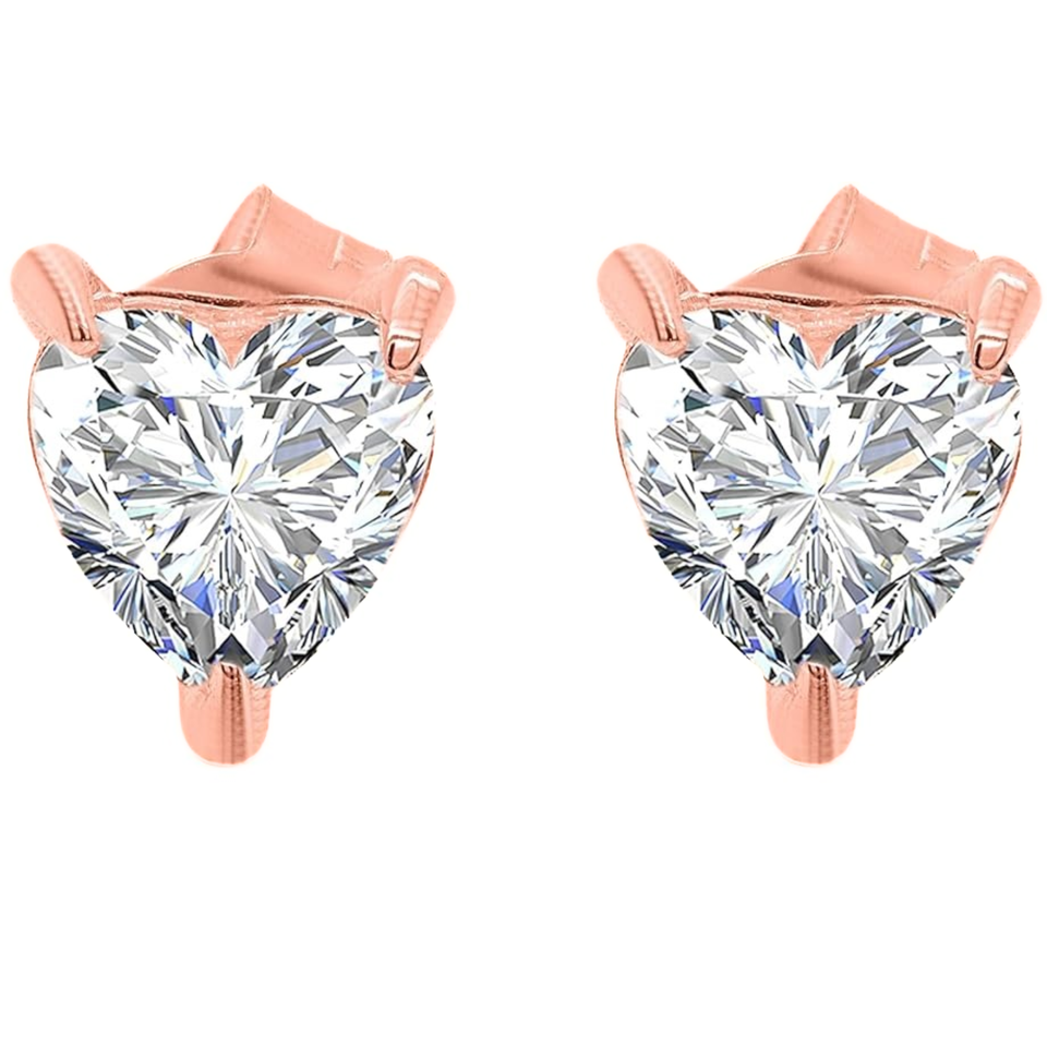 Pendientes de Diamante Cultivado en Laboratorio de 2 Quilates, Corte Corazón, Engaste de Tres Puntas, Claridad VS, Color EF, en Oro de 14K para Mujer, Joyería Fina
