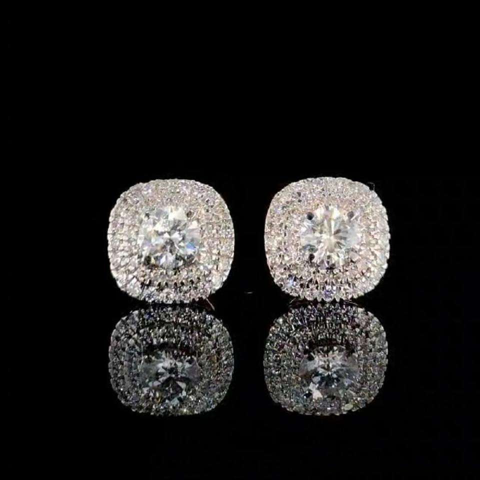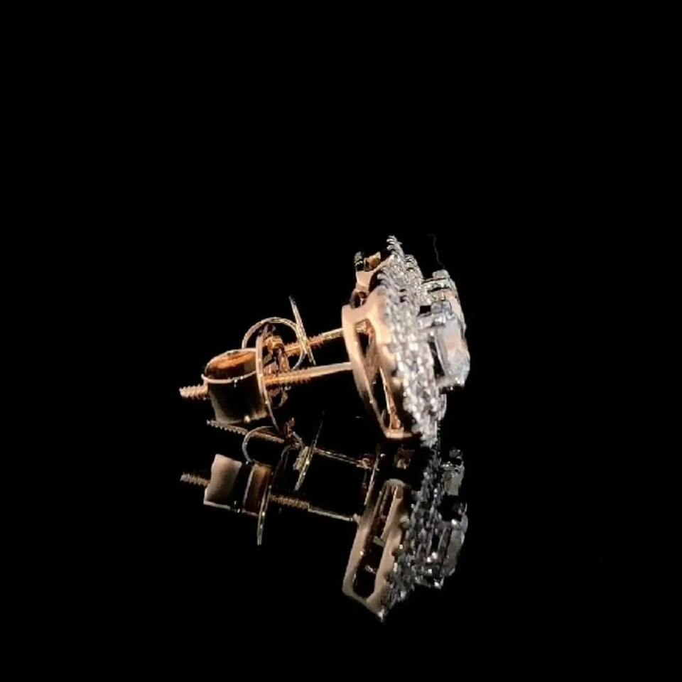 Pendientes de Diamante Cultivado en Laboratorio de Corte Redondo de 2 Quilates con Doble Halo, Oro Rosa de 14K, Elegantes para Regalo de Boda, Aniversario o Fiesta para Mujer