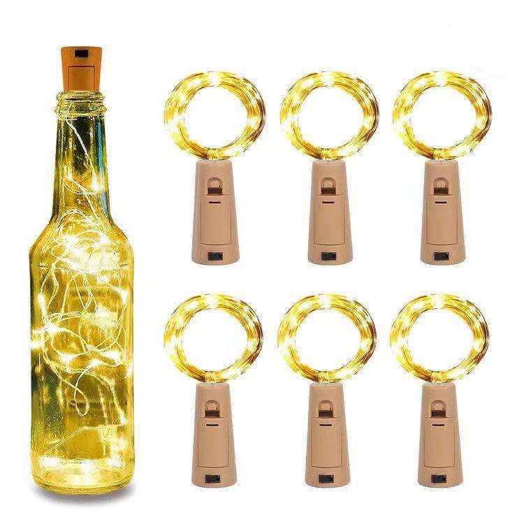 Guirnalda de Luces LED de 2m con 20 Luces, Impermeable, con Batería, Cable de Cobre, Luces Intermitentes para Botellas, Decoración para Fiestas, Bares, Bodas, Botella de Vino con Luz