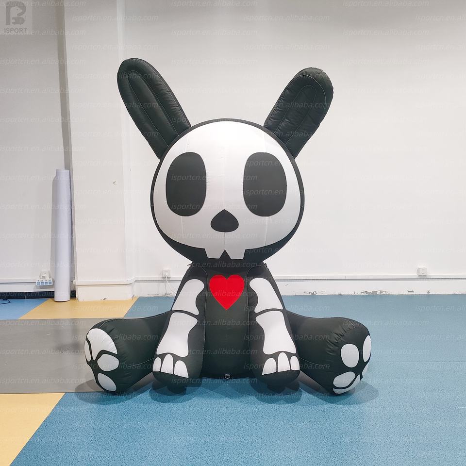 Conejo Esqueleto Inflable Gigante de 2m con Luces LED, Conejo con Calavera Iluminada para Decoración de Halloween/Casa Embrujada/Carnaval/Evento Nocturno