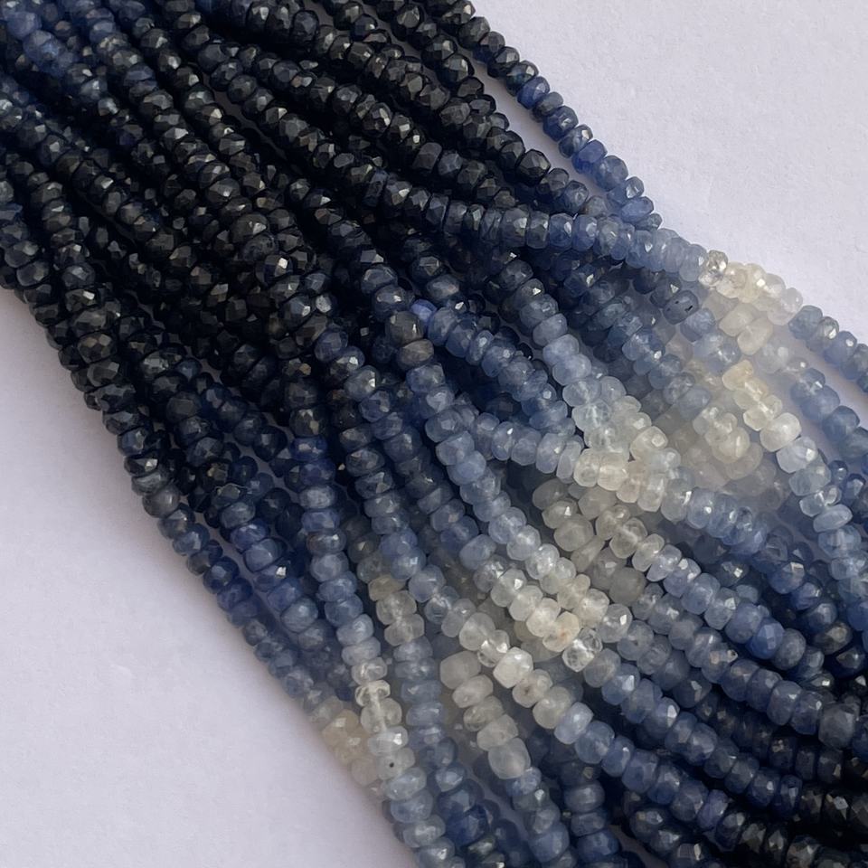 Nombre del Producto:Hilo de cuentas de zafiro azul natural, facetadas, tipo rondelle, con efecto degradado (ombre).