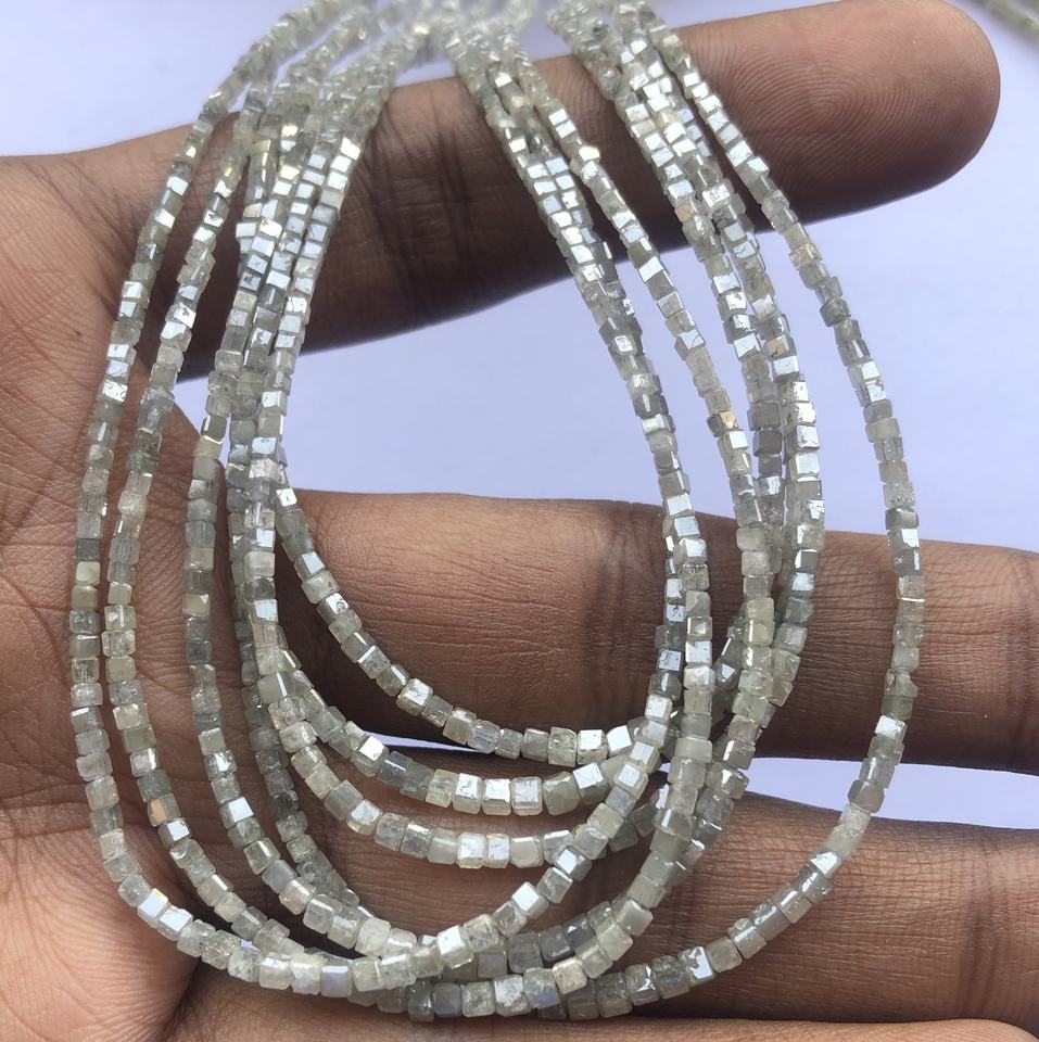 Product Name:2mm 3mm 4mm Natural Gray Diamond Faceted Cube Beads Strands