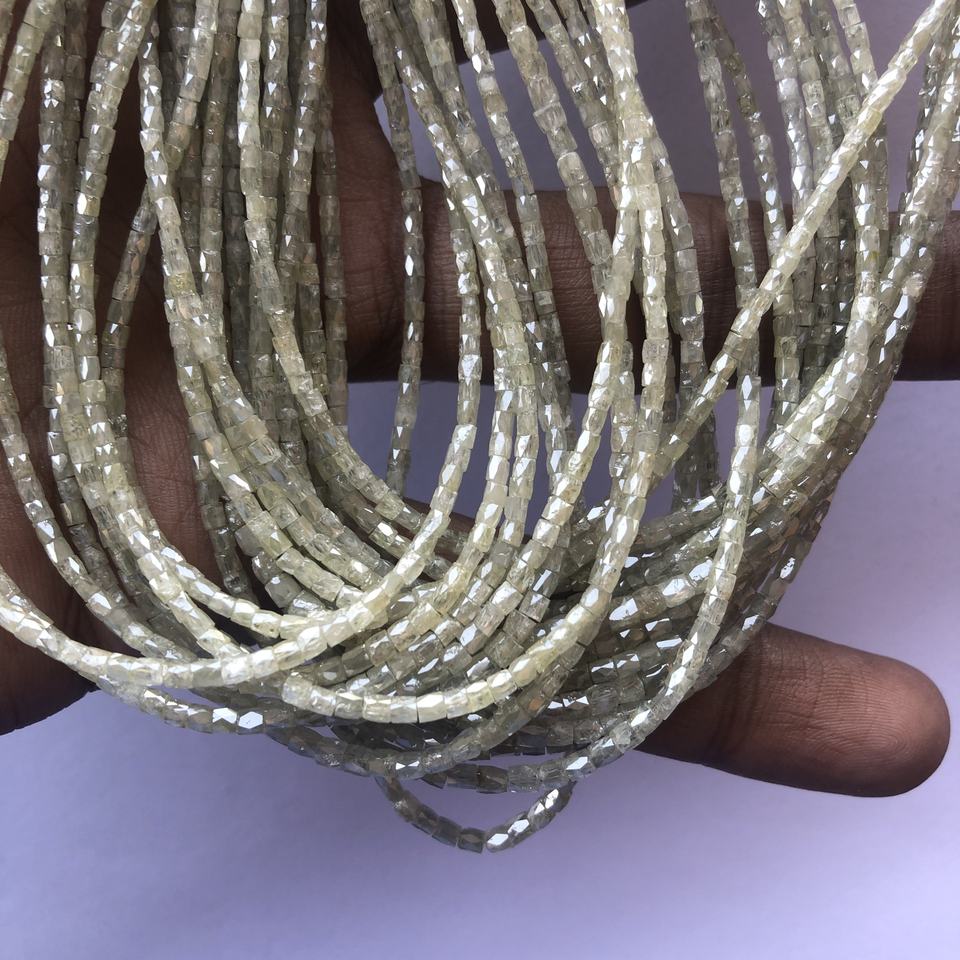 Product Name:Natural Light Yellow Diamond Faceted Pipe Shape Beads Strands