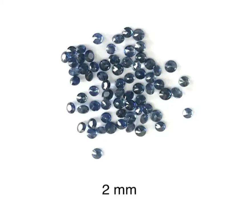 Nombre del Producto:Piedra Preciosa de Zafiro Azul Natural de 2mm, Facetada, Corte Redondo Tipo Diamante