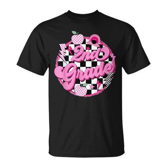 Camiseta Retro a Cuadros para el Primer Día de Clases de Maestra de 2.º Grado, Ropa Promocional con Estilo