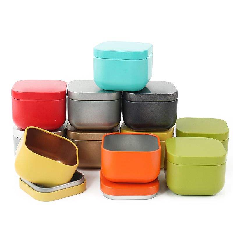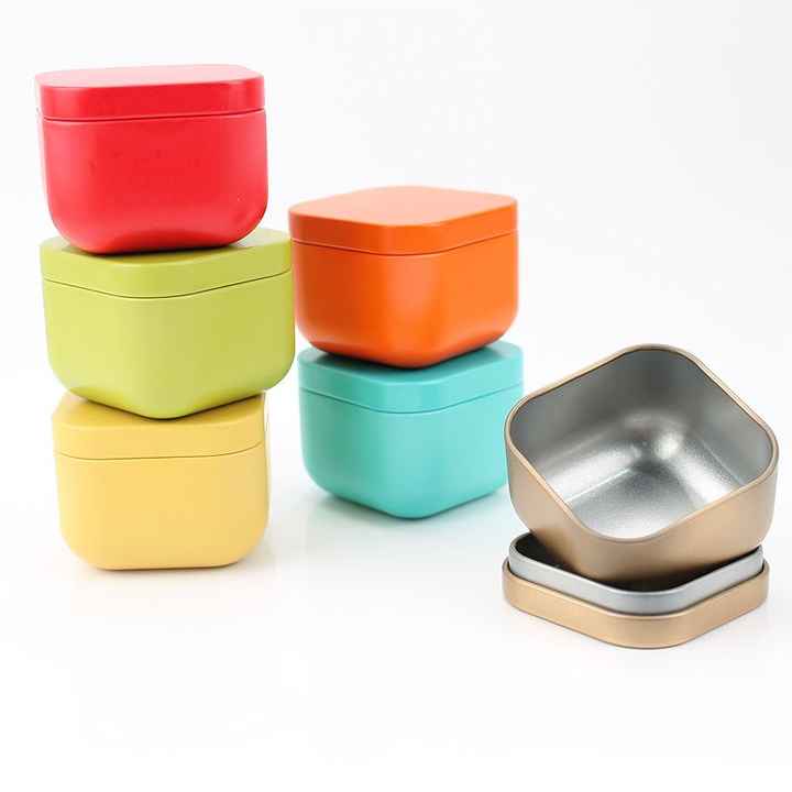 Contenedor de almacenamiento de té de tamaño de viaje de 2oz 60ml, tapa de rosca de hojalata de forma cuadrada vacía para embalaje de velas, comida, galleta cuadrada de 55x45mm