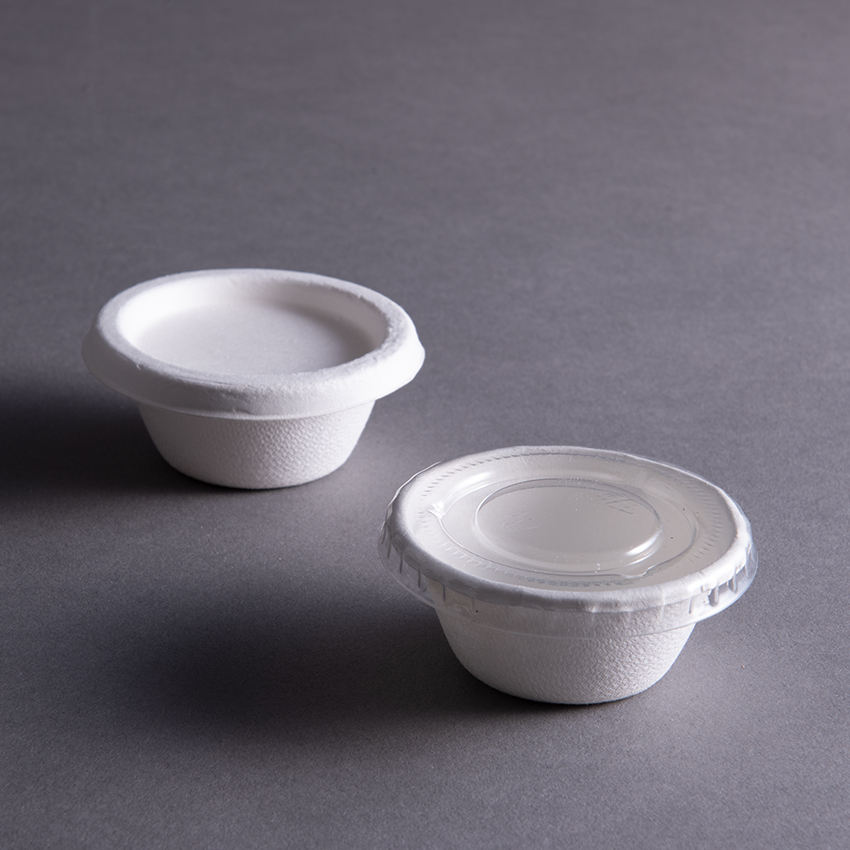Taza para salsa de caña de azúcar de 2oz, 100%, logotipo personalizado compostable, tazas pequeñas desechables para salsa de bagazo
