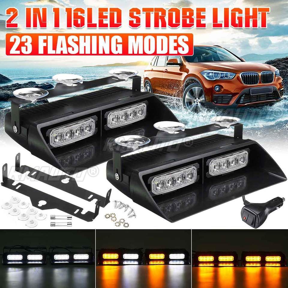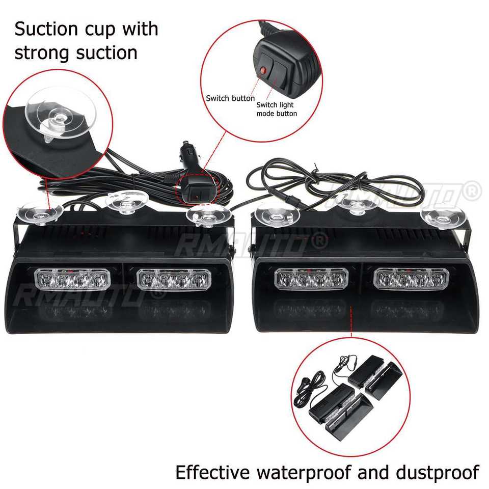 2 Piezas de Luces Estroboscópicas de Advertencia de Emergencia para Parabrisas de Coche, 16 LED, 12V, para Camiones y SUV, 23 Modos de Iluminación Intermitente