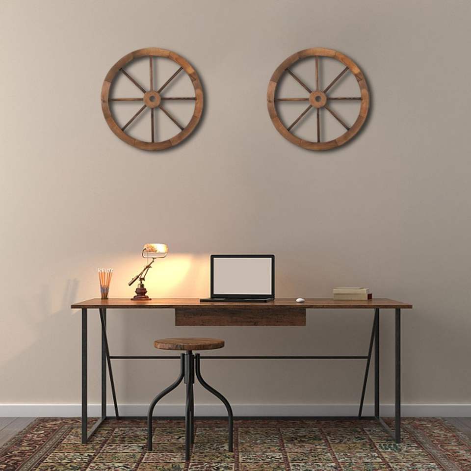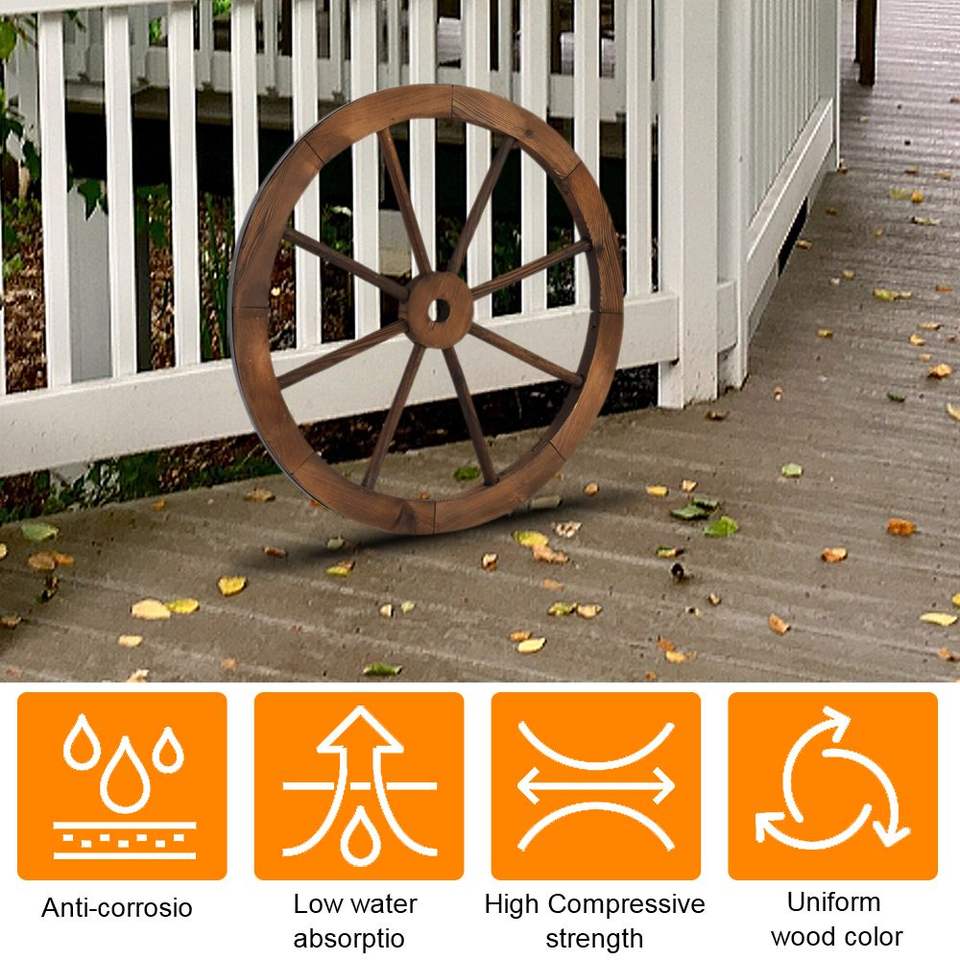 Juego de 2 Ruedas de Carro de Madera de Estilo Occidental Antiguo de 24 Pulgadas para Decoración de Pared de Jardín, Color Marrón