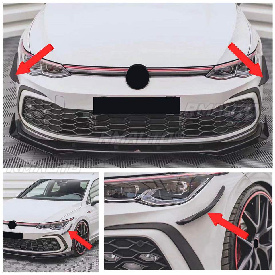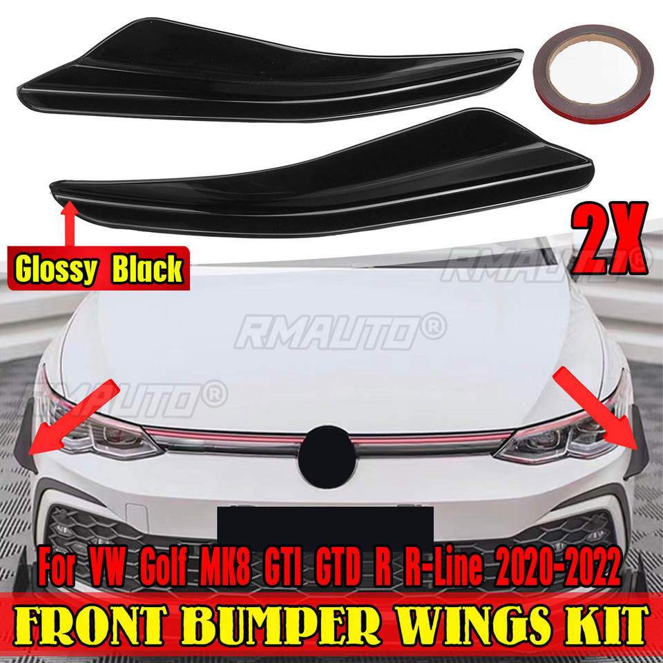 2 piezas de alerones laterales delanteros para parachoques de coche Volkswagen VW Golf MK8 GTI GTD R R-Line 2020-2022, tipo Canard