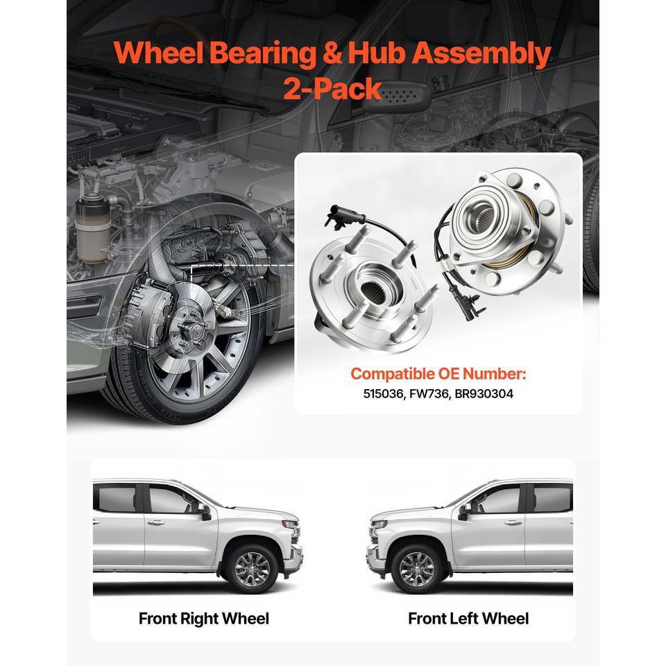 2 Piezas de Conjunto de Cubo de Rodamiento de Rueda Delantera para Chevy Silverado 1500 4WD 2013, Express 1500, GMC Savana 1500 Base Standard Carg