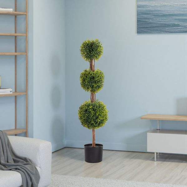 2 Piezas de Árbol Artificial de PVC Verde de 115 cm, Diseño de Tres Esferas