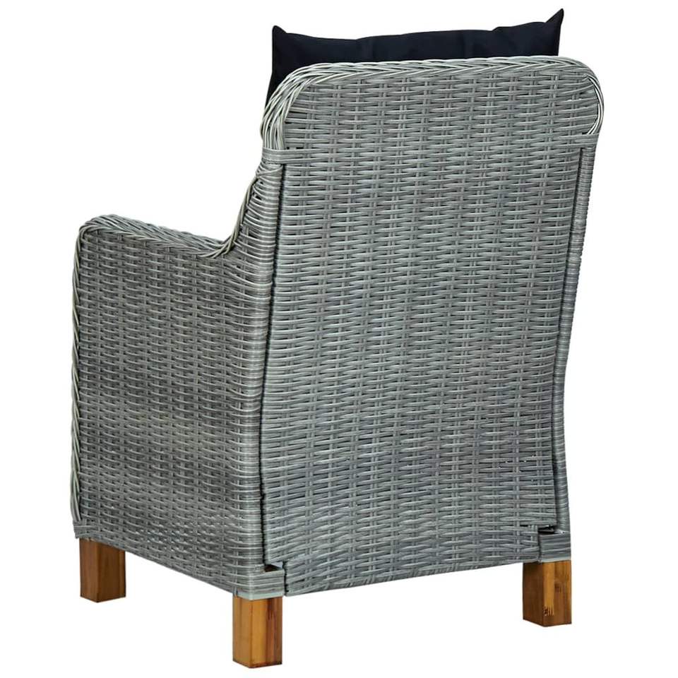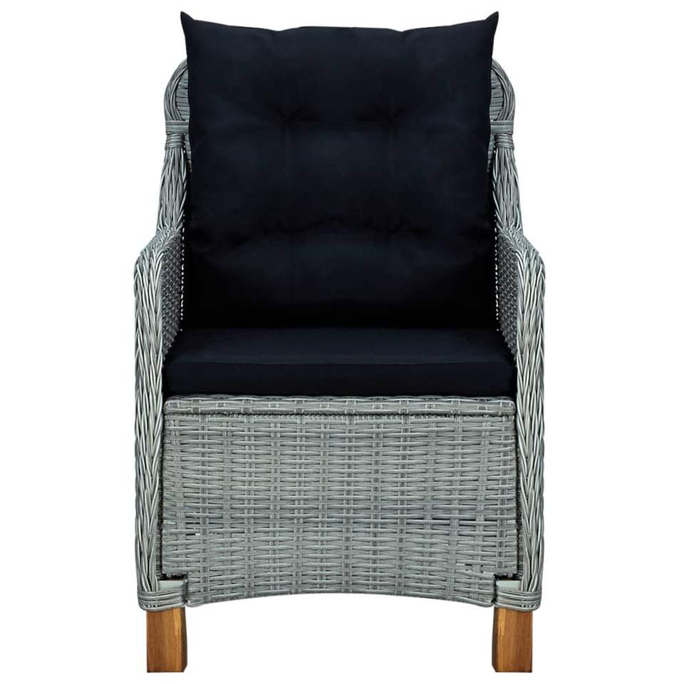 2 sillas de patio de ratán polivinílico gris claro con cojines