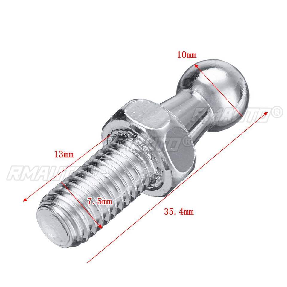 2 unidades de rótulas de bola universales plateadas de 10mm M8 para amortiguadores de gas de maletero y capó, con junta de válvula de resorte