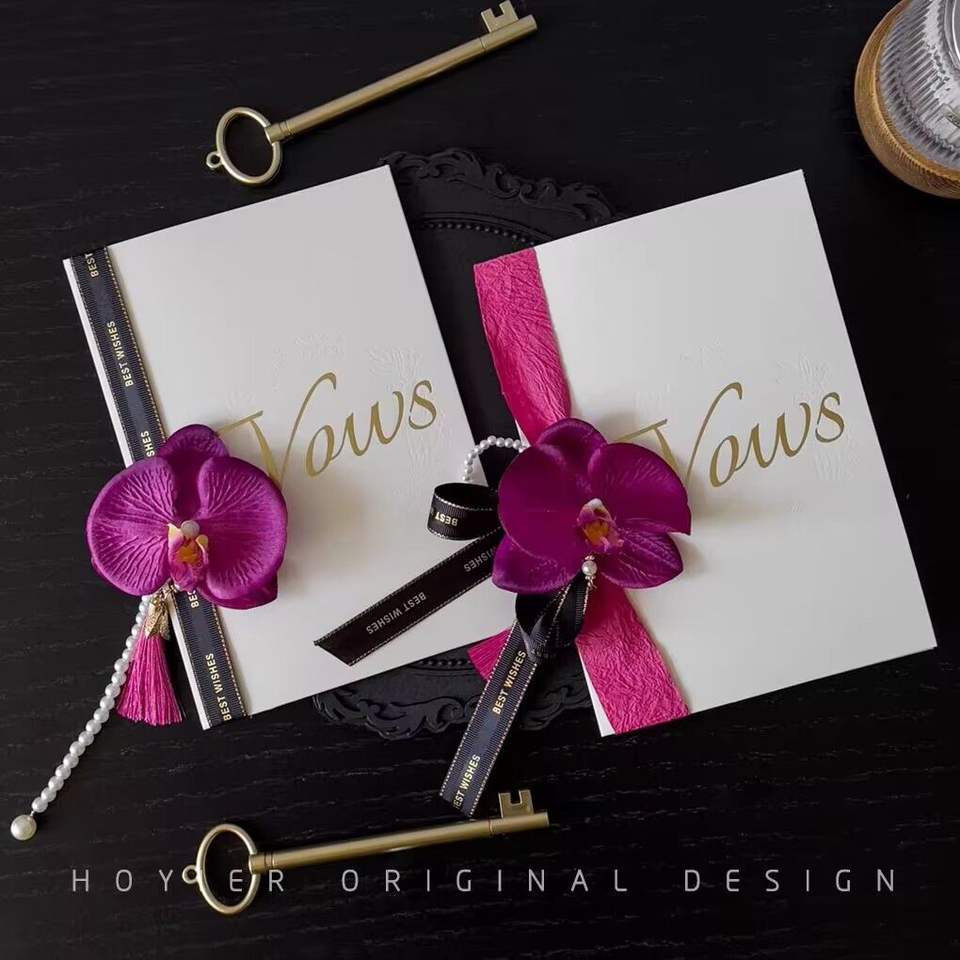 2 uds. De libros de votos de boda, Lazo de cinta, caja de bolígrafo Floral, diario de papel para accesorios de novia, libro oficial para bodas