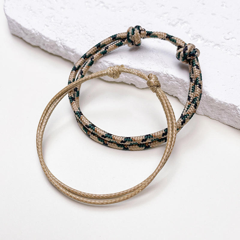 Juego de 2 Pulseras Náuticas de Cuerda Trenzada Encerada, Hechas a Mano, Ajustables, de Nailon y Paracord