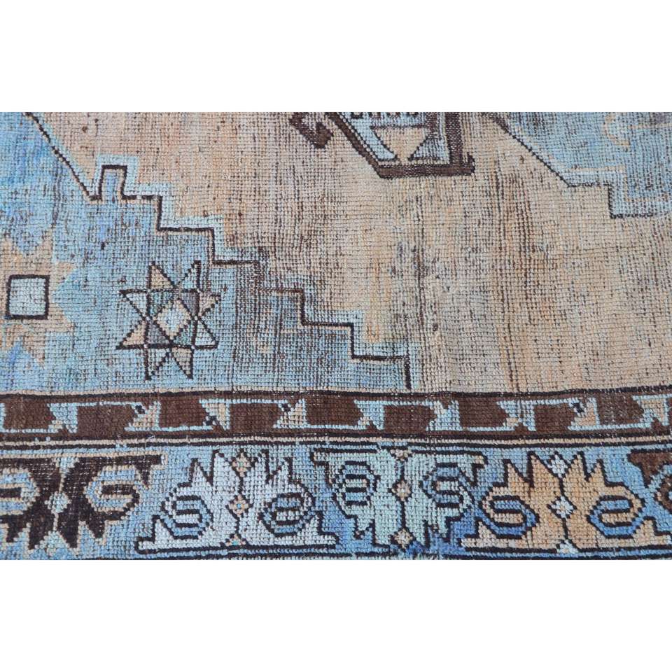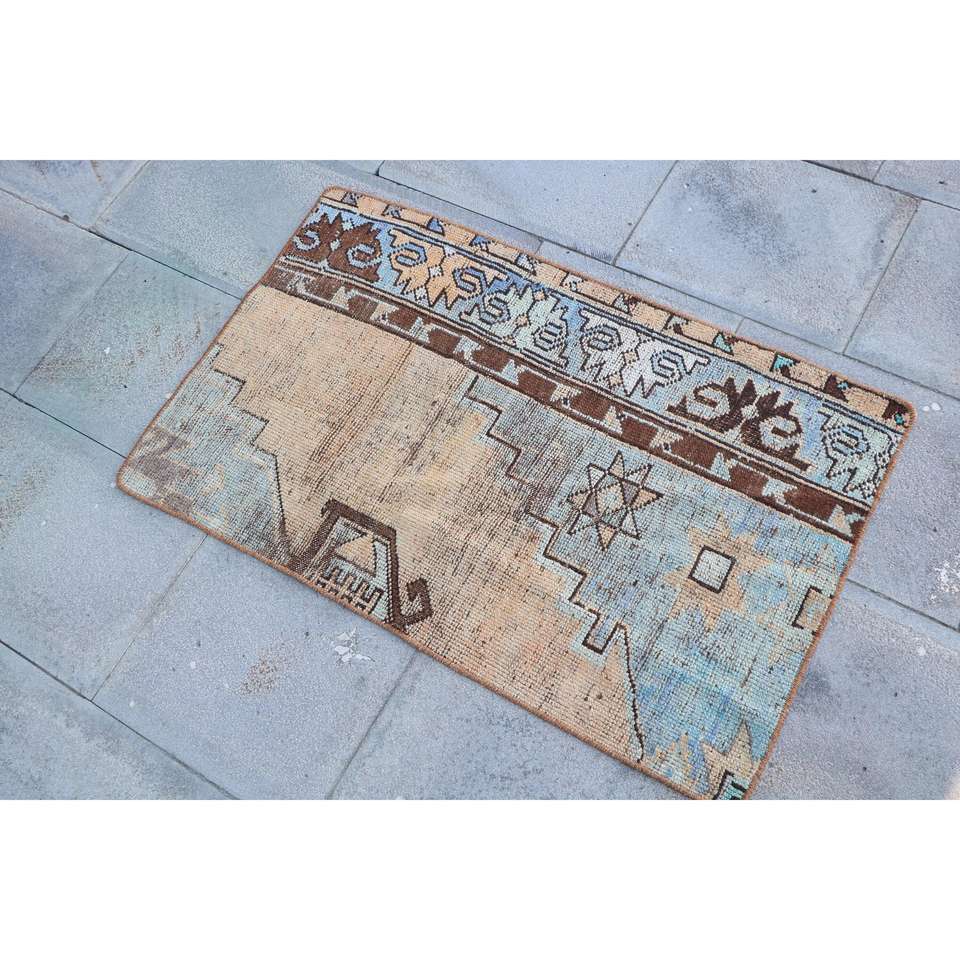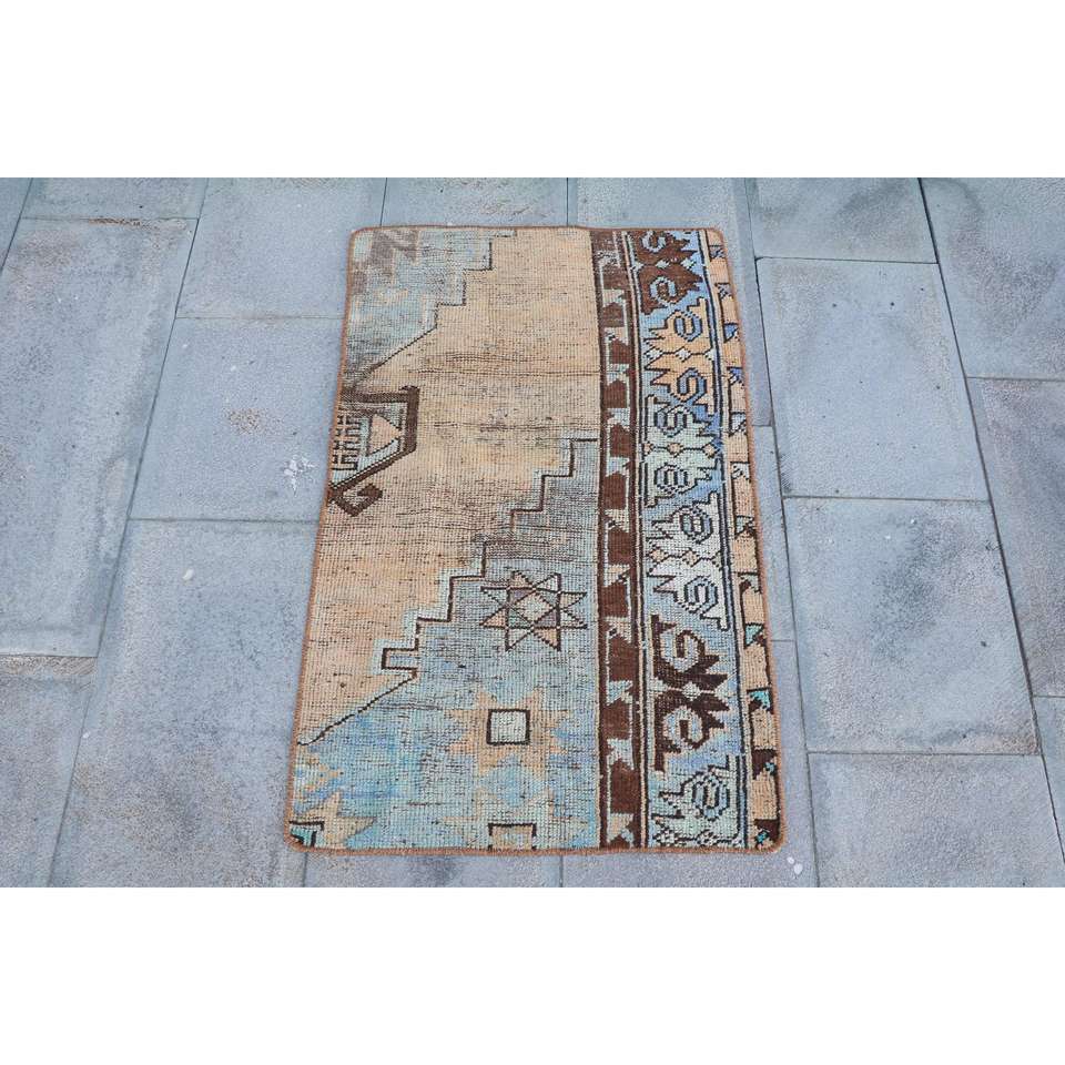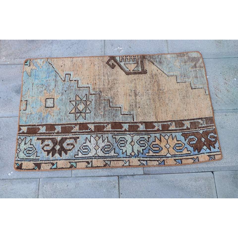 Alfombra Vintage de 2x3.1 pies, Alfombra Turca Pequeña, Alfombra Floral Azul Marrón