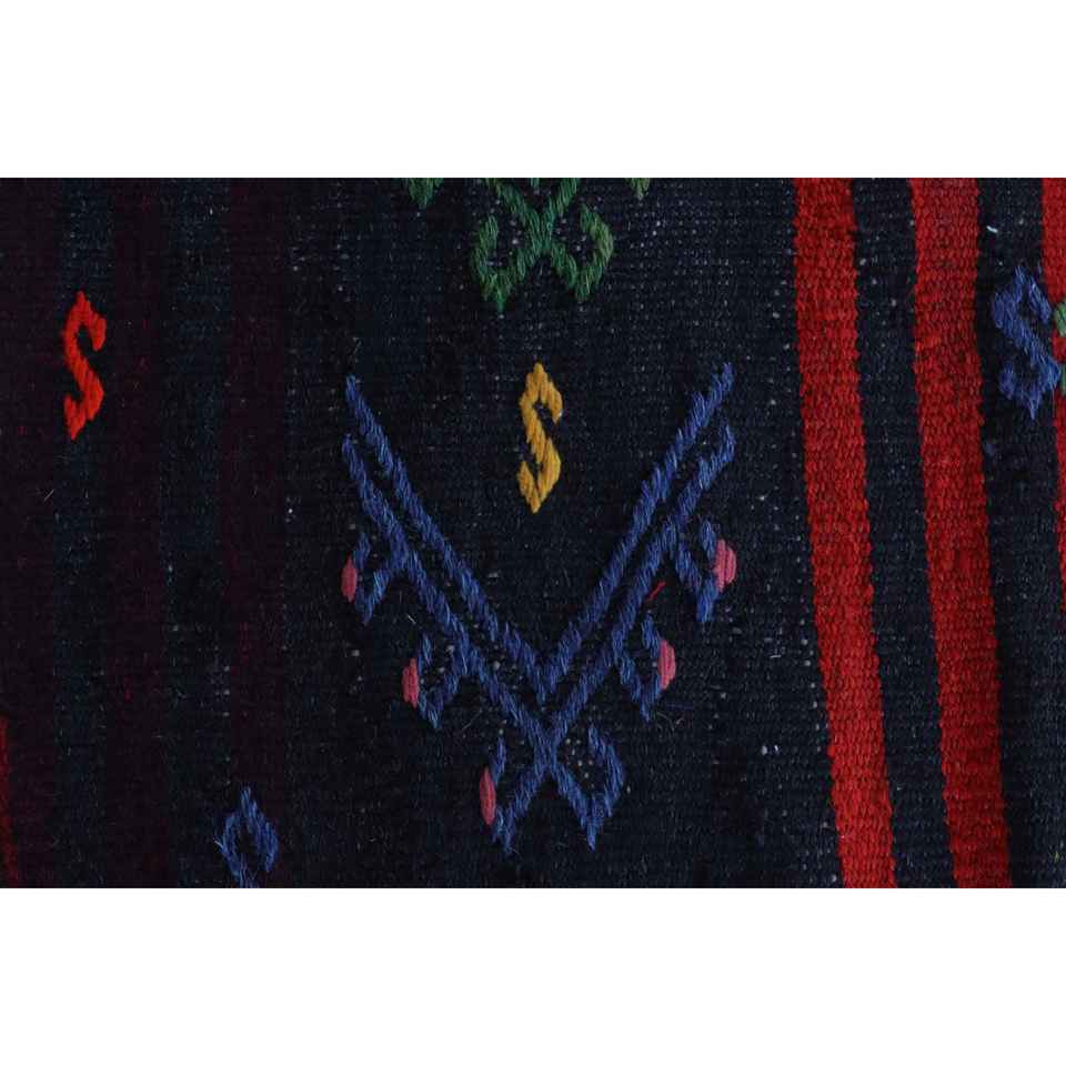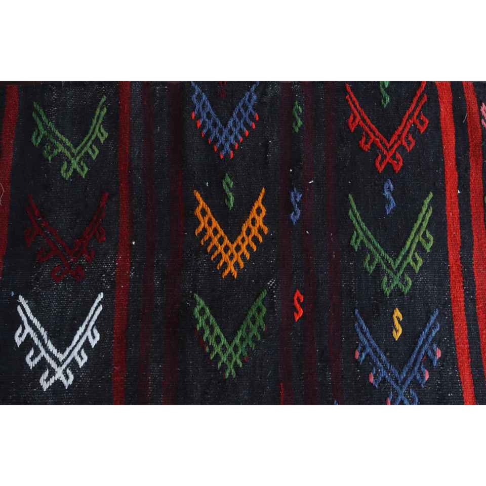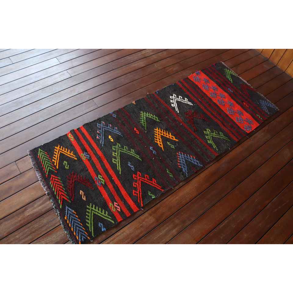 Alfombra de 2x5,3 pies, alfombra turca vintage, alfombra de lana negra con plantas y árboles rojos