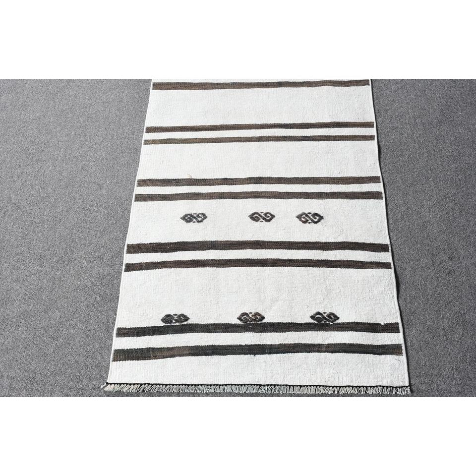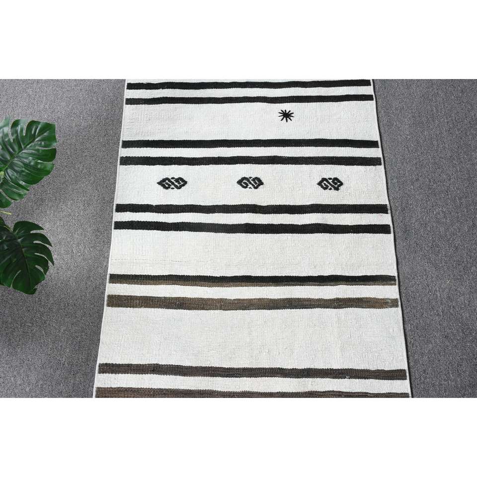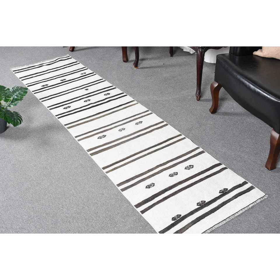 Alfombra de 2x8.3 pies, Alfombra Turca Vintage, Alfombra de Lana a Rayas Blancas y Negras
