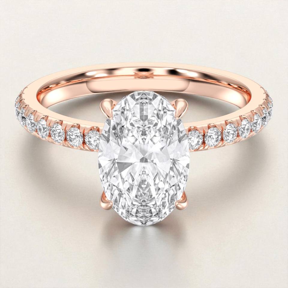 Anillo de compromiso de punta de diamante de corte ovalado y redondo de 3,00 quilates, hecho en oro macizo para mujer