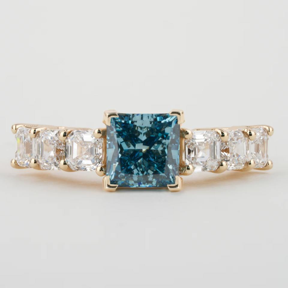 Anillo de Compromiso de Diamante Moissanita Azul Corte Asscher de 3.00 TCW, Regalo de Boda, Plata, Certificado IGI, Claridad VVS VS, Sin Conflictos