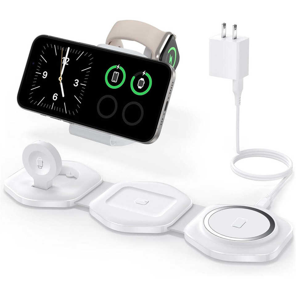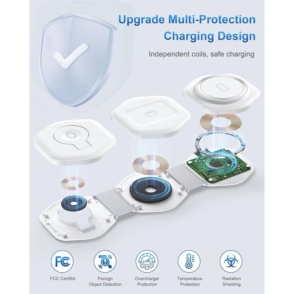 Estación de carga inalámbrica magnética plegable 3 1 para dispositivos Apple PC multifunción de 10W con certificación ROHS para auriculares de teléfonos inteligentes
