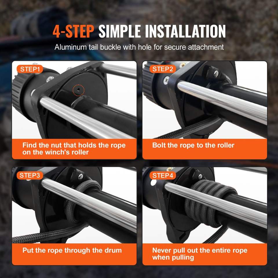 Cuerda Sintética para Cabrestante de 3/16 Pulgadas x 50 Pies, 8,350 Libras, con Funda Protectora + Tope + Cabrestantes Forjados Tipo W