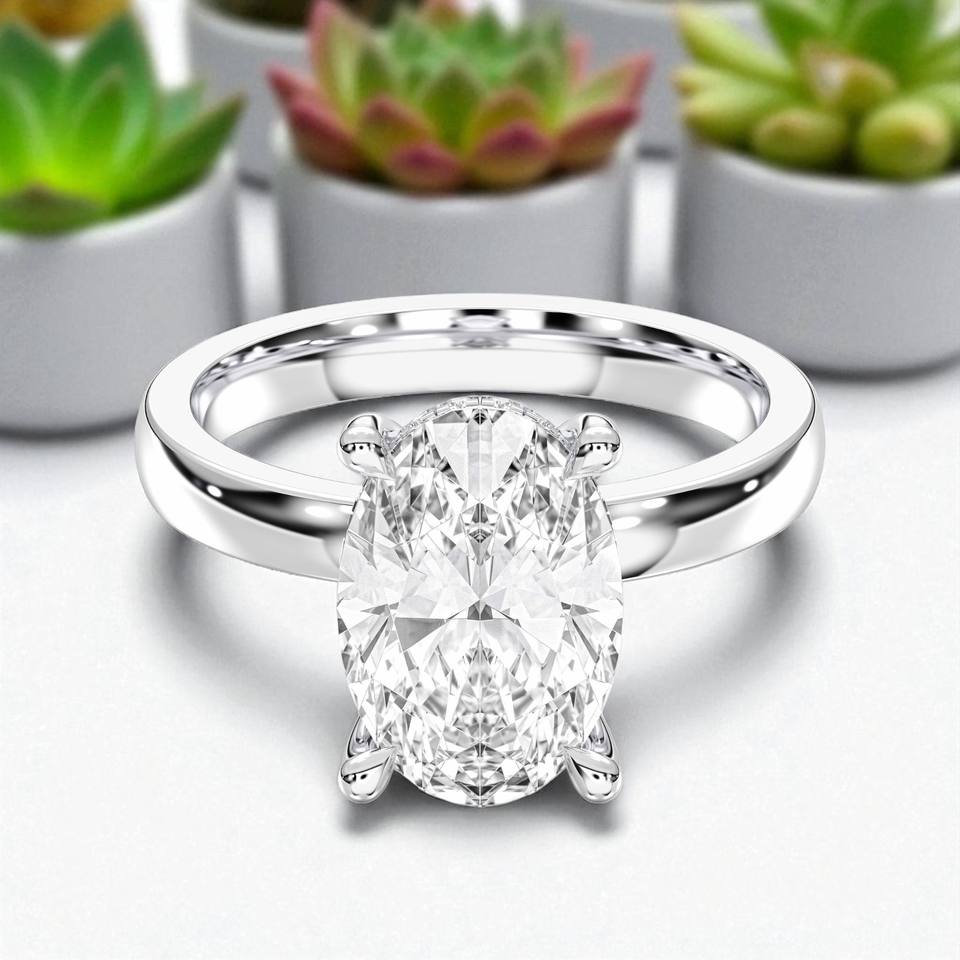Juego de puntas de diamante de forma ovalada y redonda de 3,19 quilates, anillo de compromiso de solitario en plata de ley para mujer
