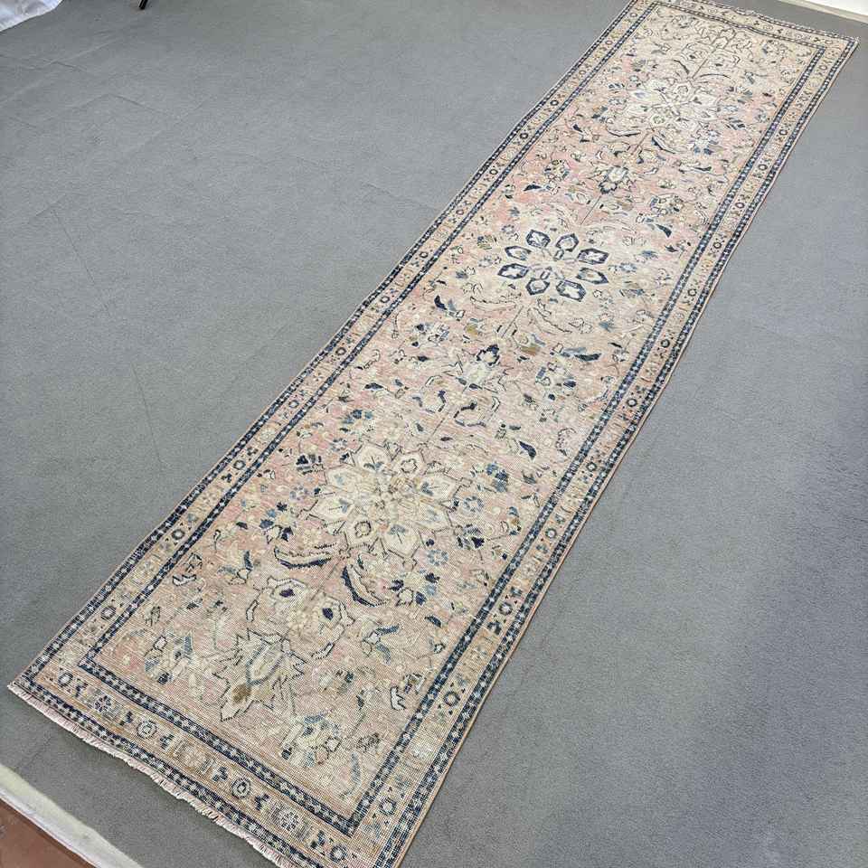 Alfombra de 3.1x12.3 pies, Alfombra Turca, Alfombra Persa Azul