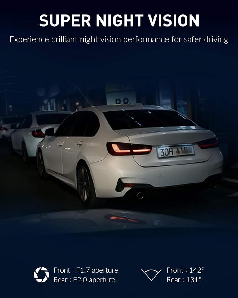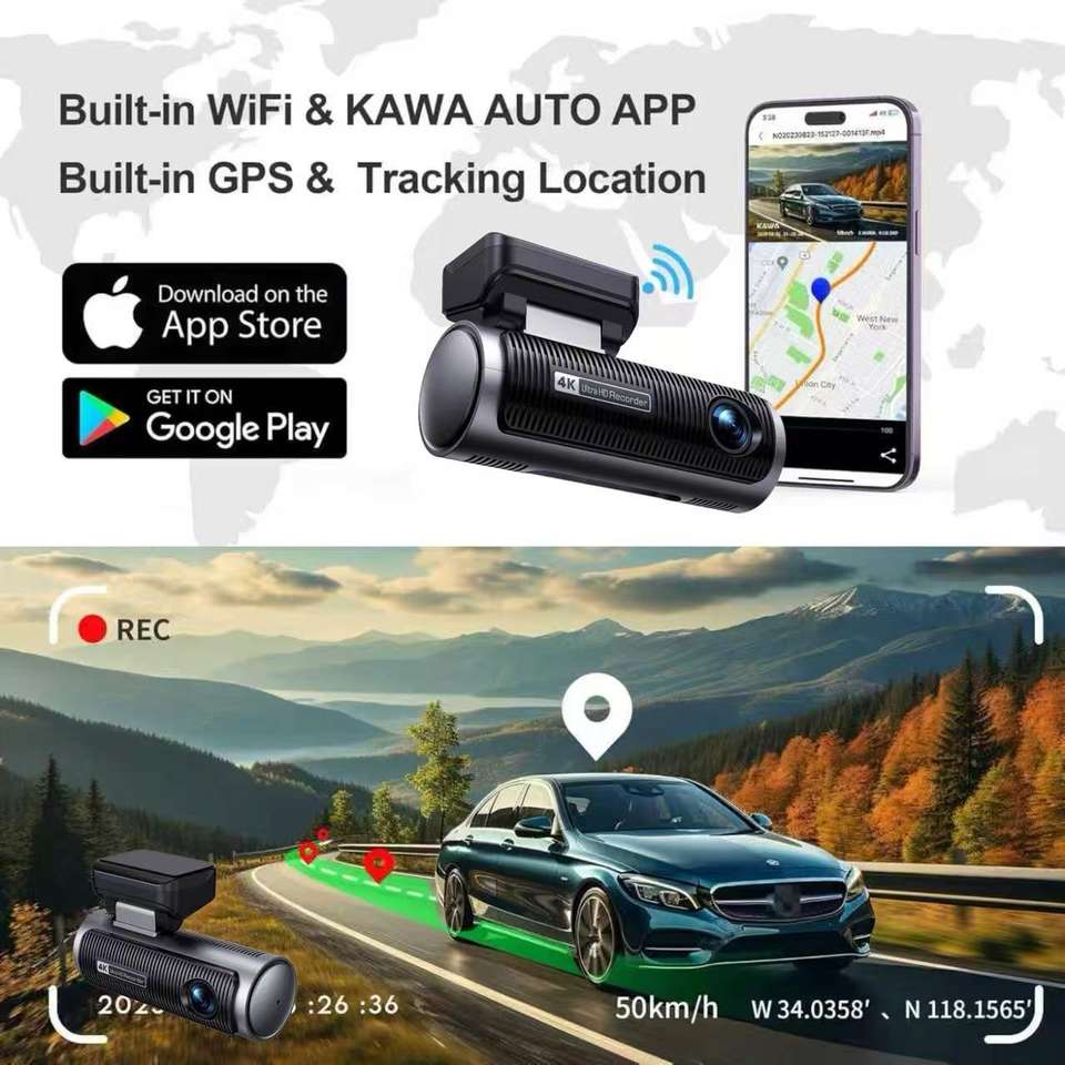 Cámara para Coche DVR Mini de 3.2 Pulgadas 4K+4K con Visión Nocturna WDR, Wifi con Aplicación, Cámara de Doble Lente 2160P, Caja Negra para Coche, Cámara Delantera y Trasera 4K