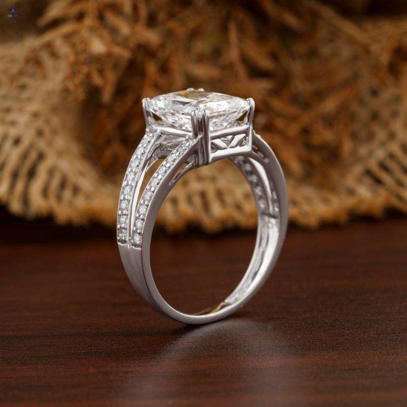 Anillo de diamante de corte redondo y radiante 3,25 TDW, oro blanco de 18 quilates, vástago dividido, estilo Cvd/hpht, piedra de laboratorio de diamantes