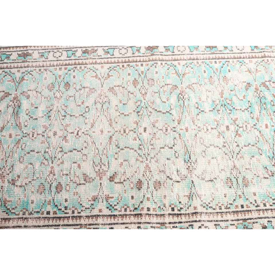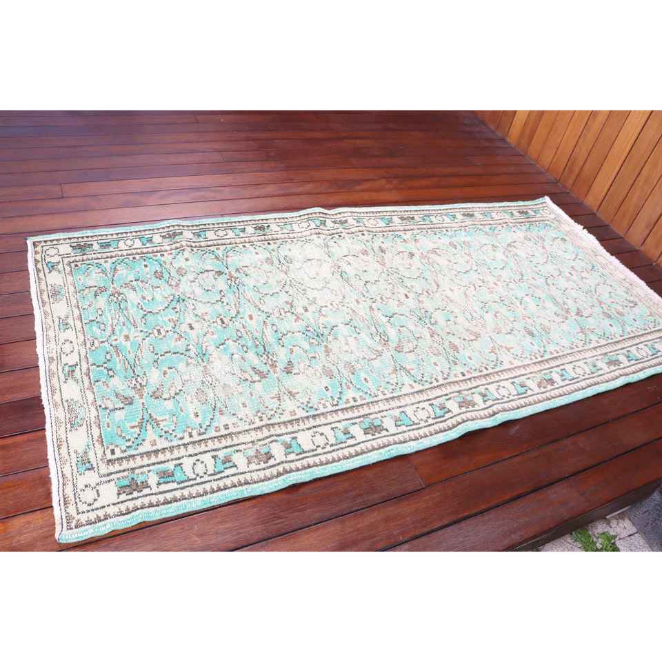 Alfombra Turca de 3.2x6.6 pies, Alfombra de Lana Vintage con Diseño Floral Azul