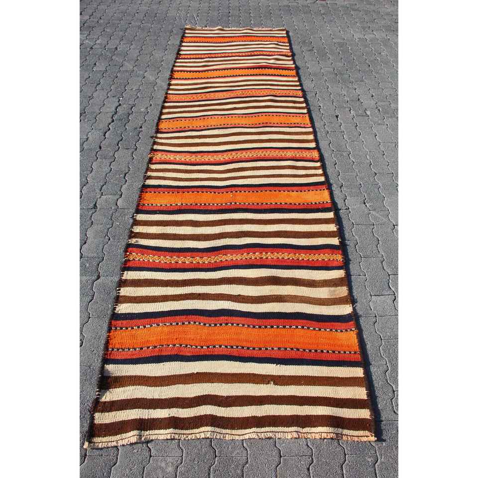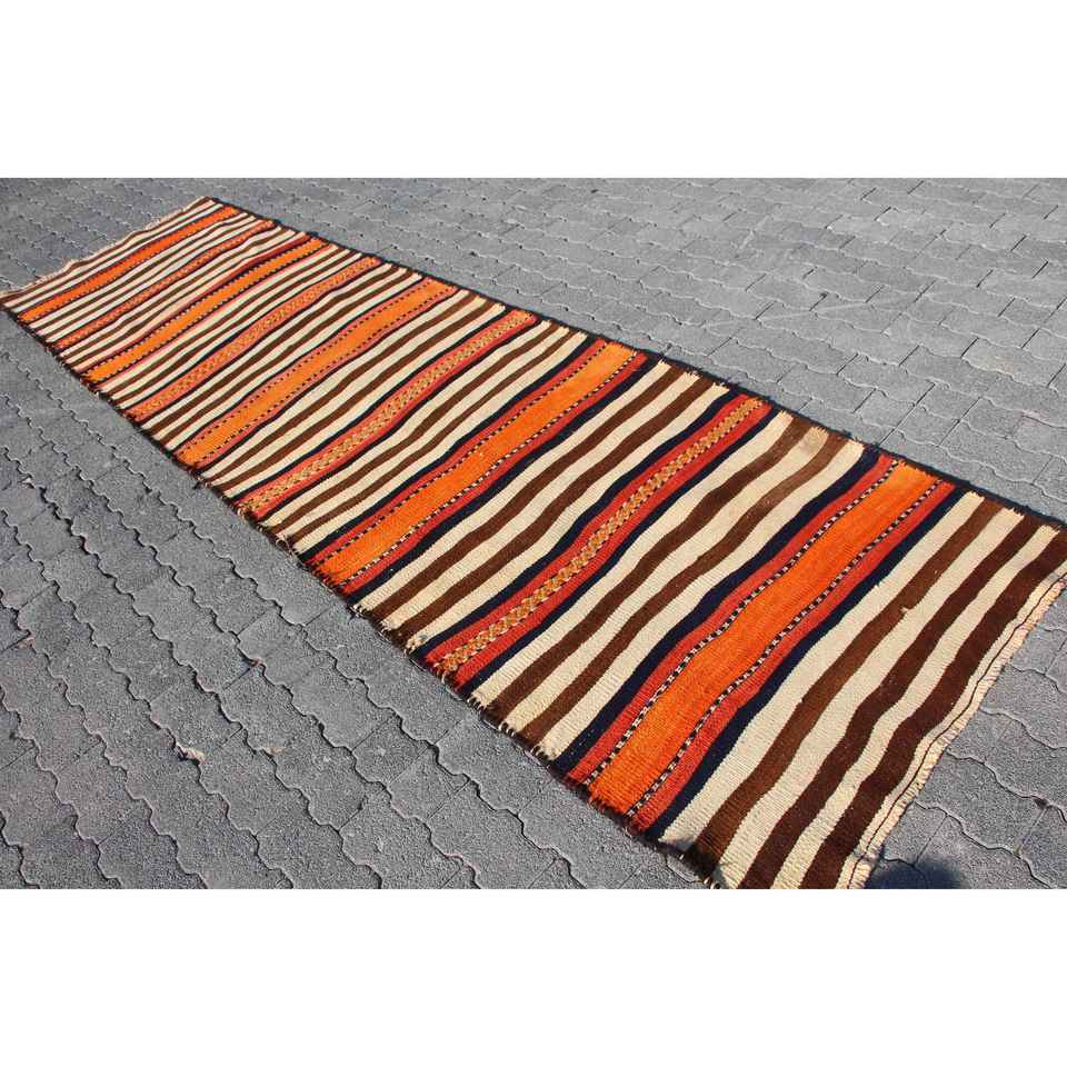 Alfombra turca de 3.3x11.7 pies, alfombra vintage tipo pasillo, alfombra con diseño de plantas y árboles marrones