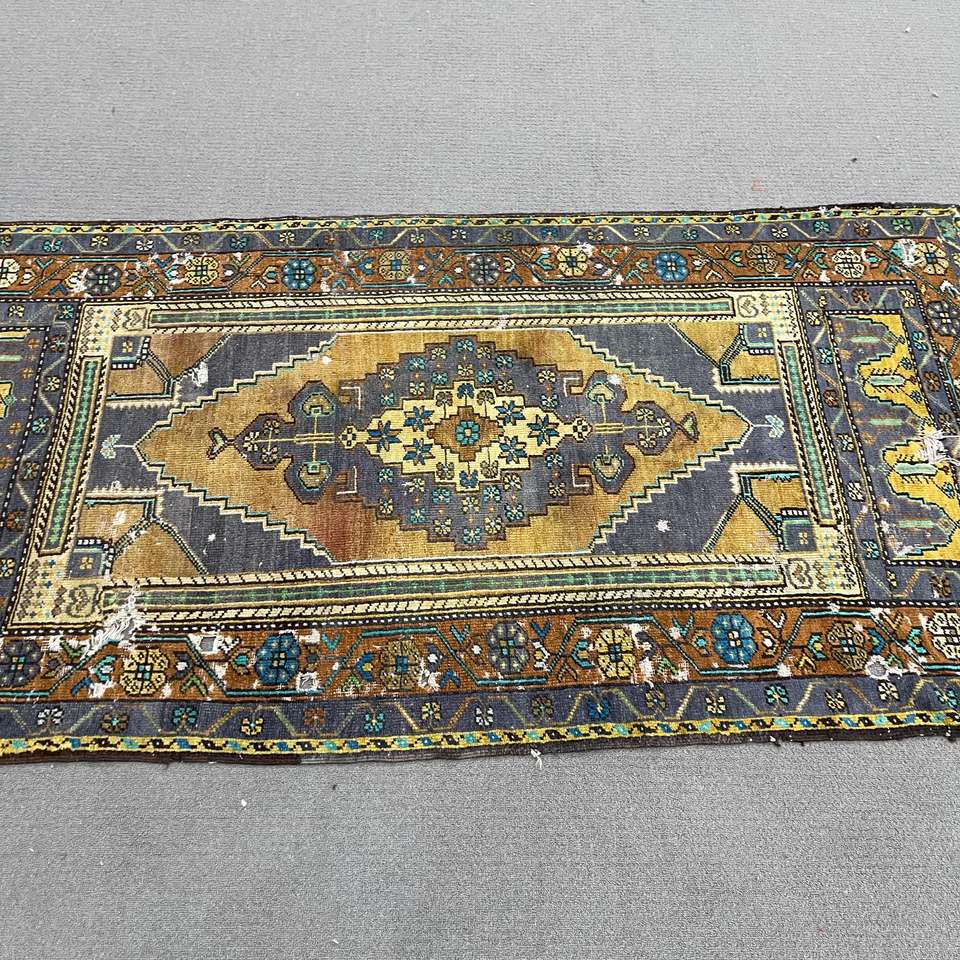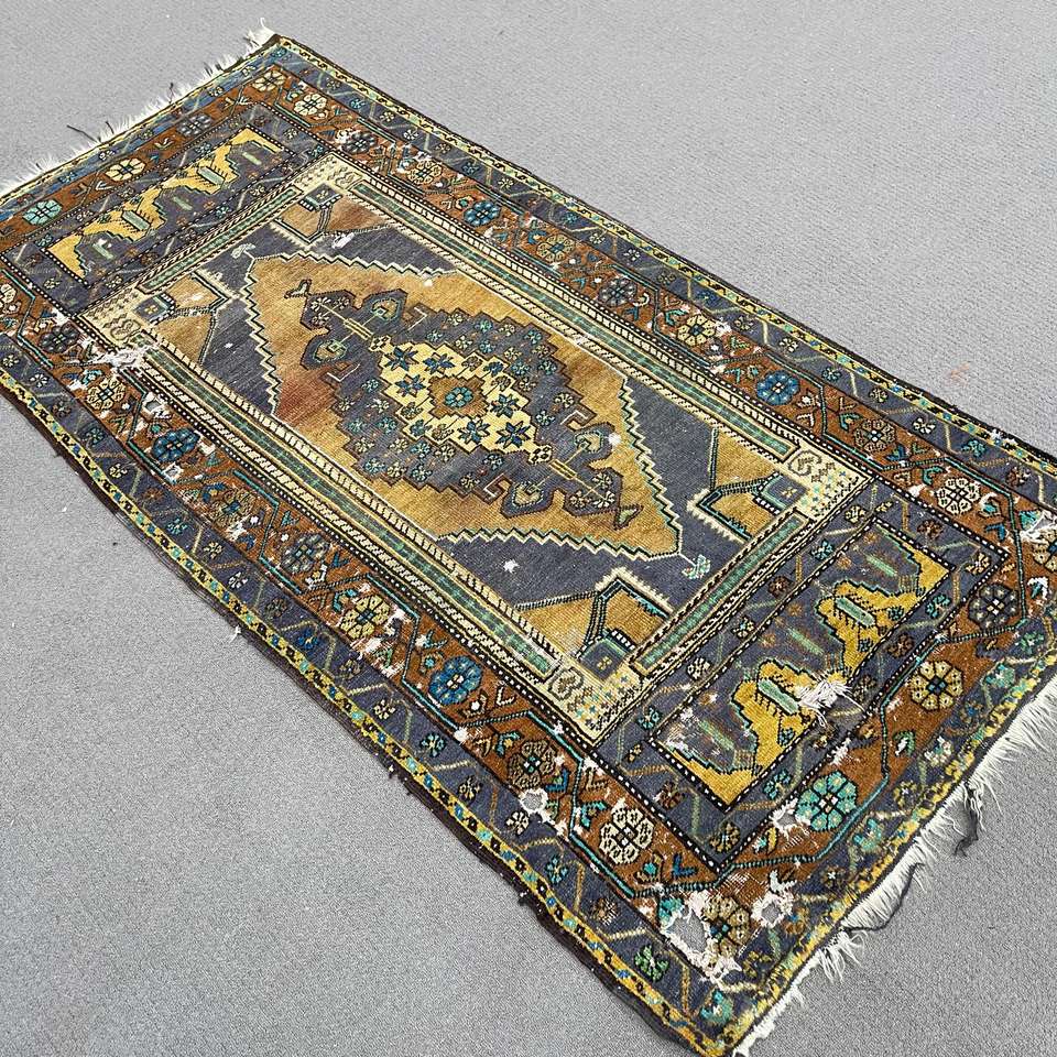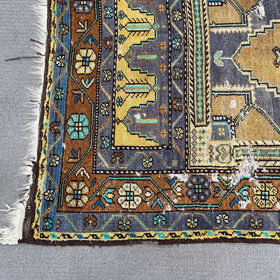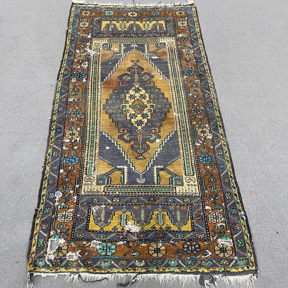 Alfombra de 3.3x6.3 pies, Alfombra Turca Vintage, Alfombra de Lana Azul