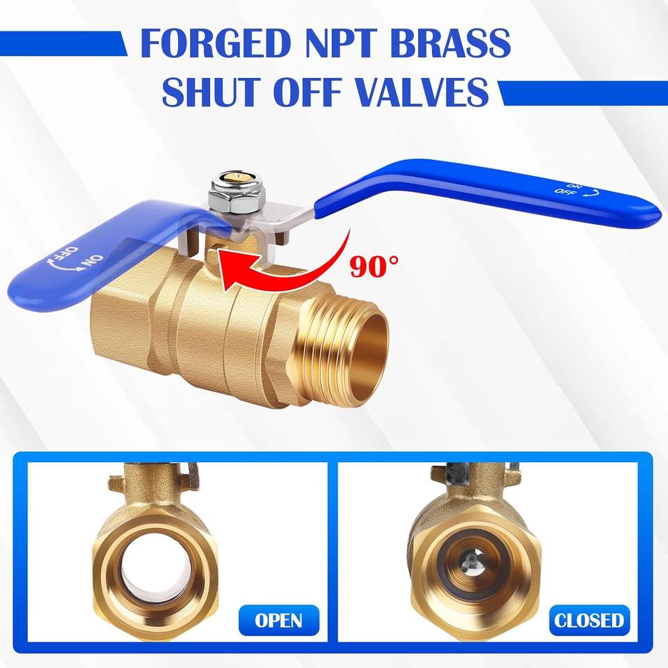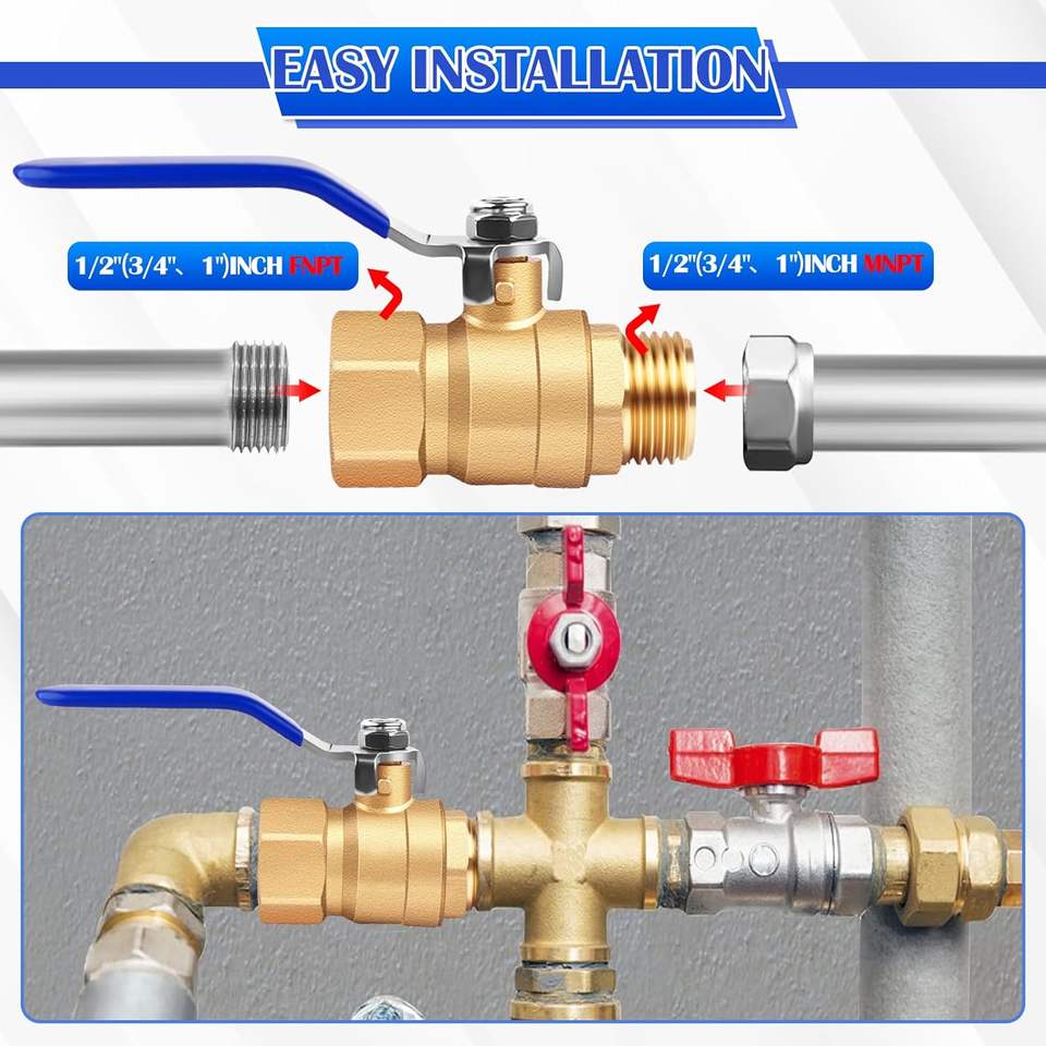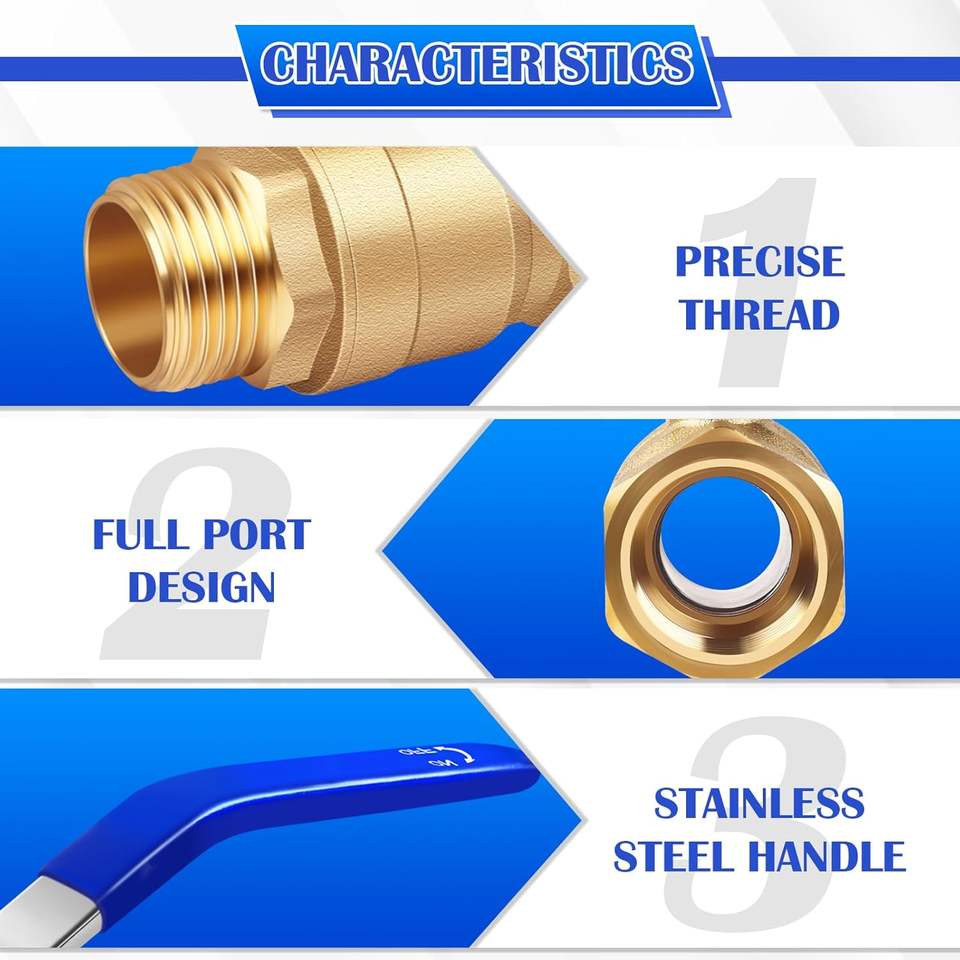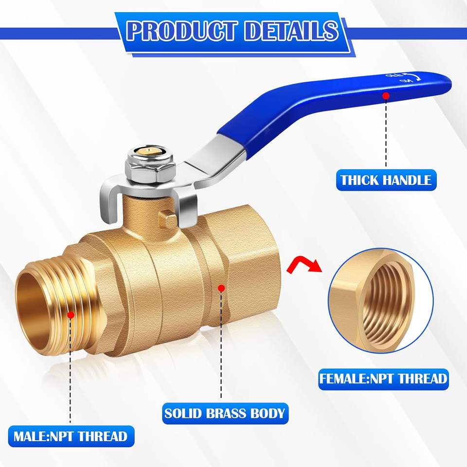 Válvula de Bola de Paso Completo de 3/4 Pulgadas, Paquete de 2, Latón Forjado de Alta Resistencia, 150 PSI WSP/600 PSI WOG, Agua, Aceite, Gas, Macho Hembra NPT