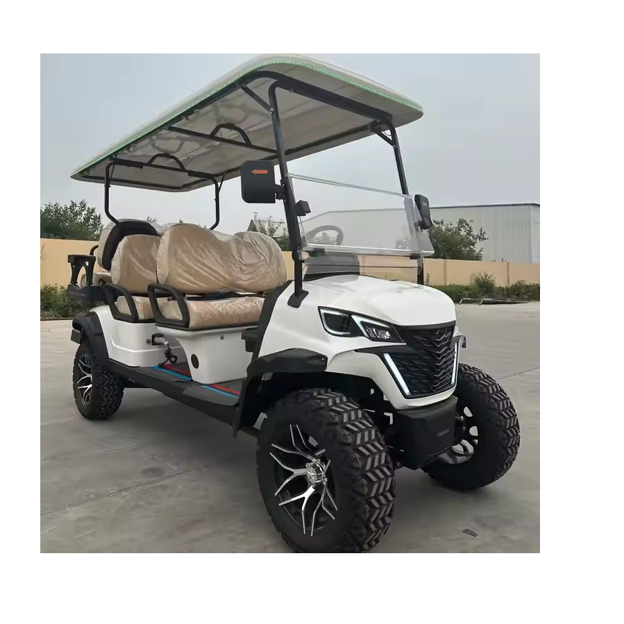 Carrito de Golf Eléctrico de Litio con Motor de CA de 5KW y 72V, 3-4 Plazas, para Caza y Resorts de Playa, con 4+2 Asientos, 50-70Km/h, Autonomía de 30-50km