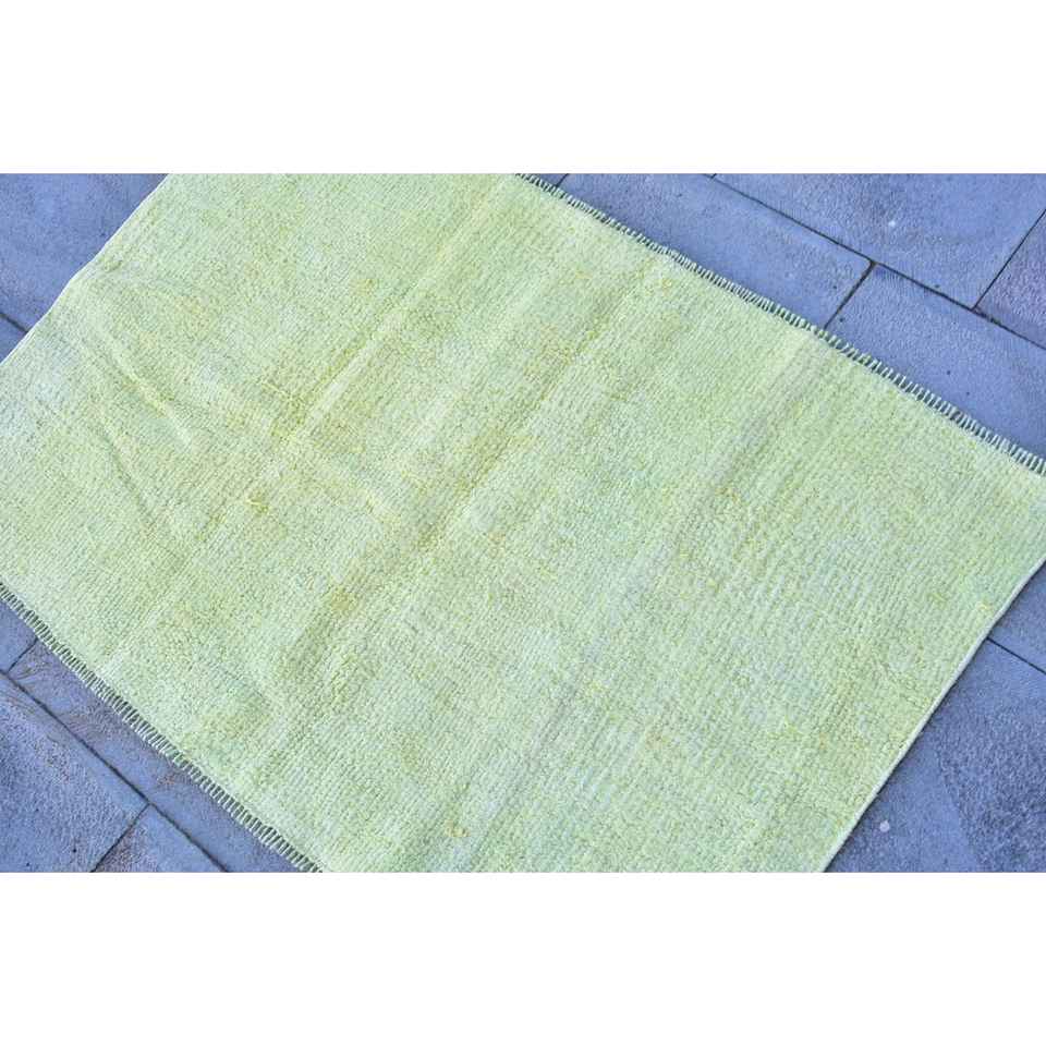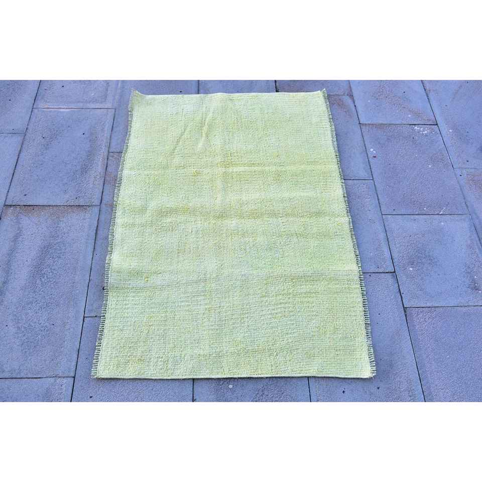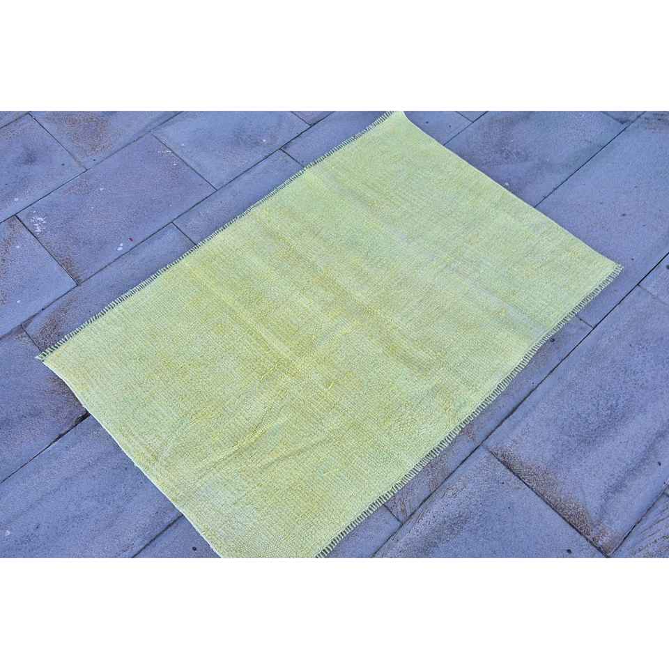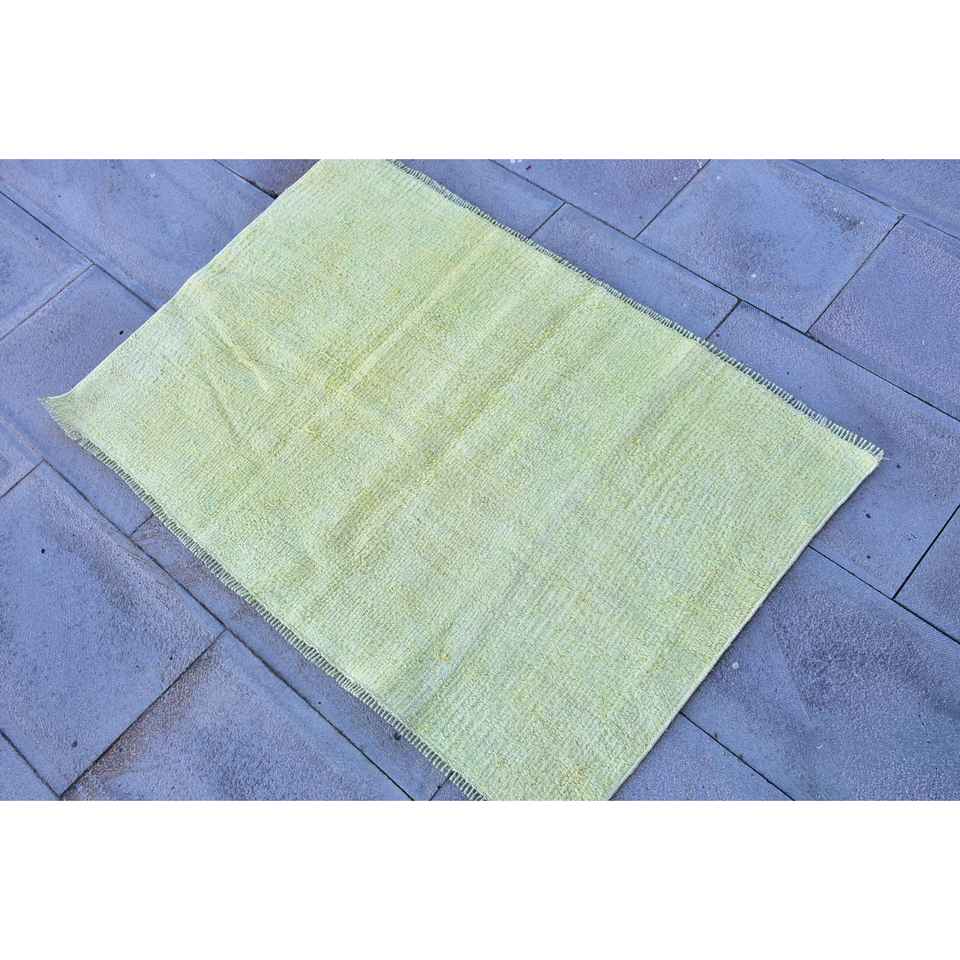 Alfombra Turca Vintage Ecológica de 3.4x2.4 pies, Alfombra Pequeña de Lana con Parches Amarillos y Base de Látex