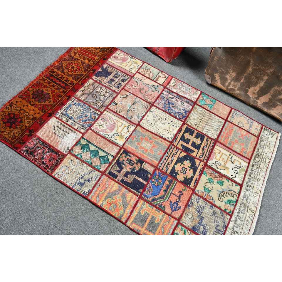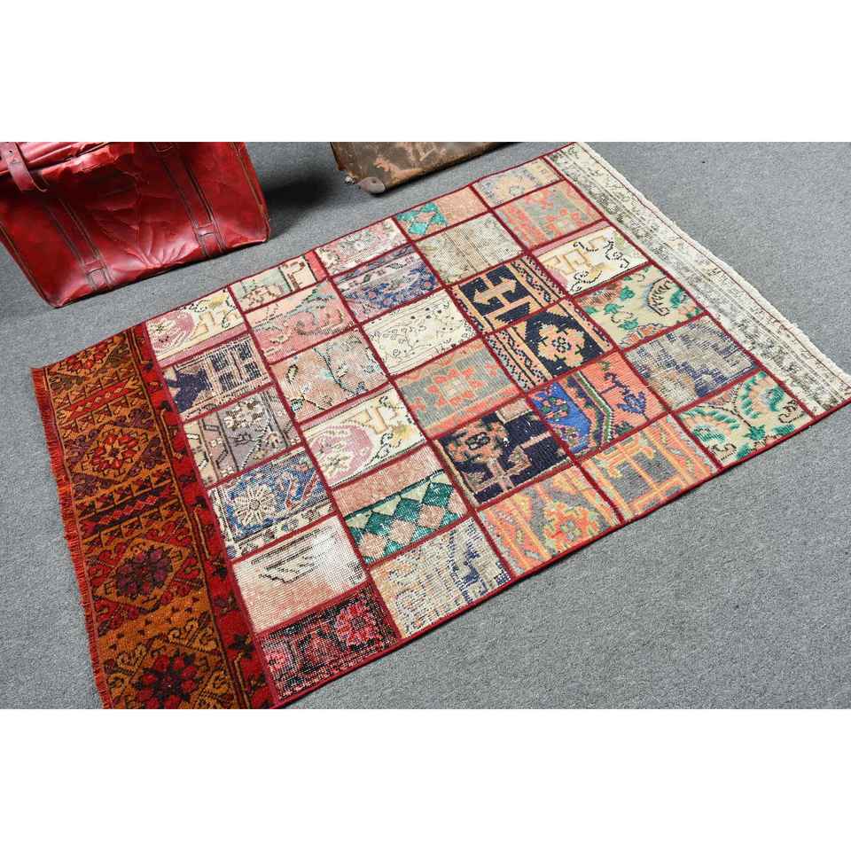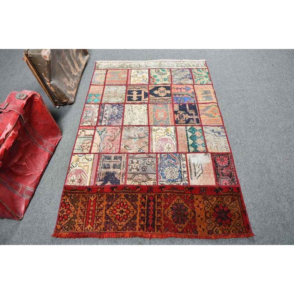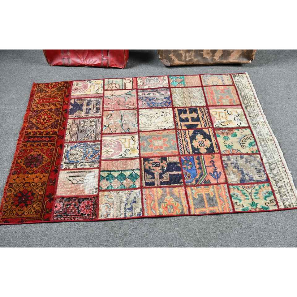 Alfombra Vintage de 3.4x5.2 pies, Alfombra, Alfombra de Camuflaje Roja de Lana